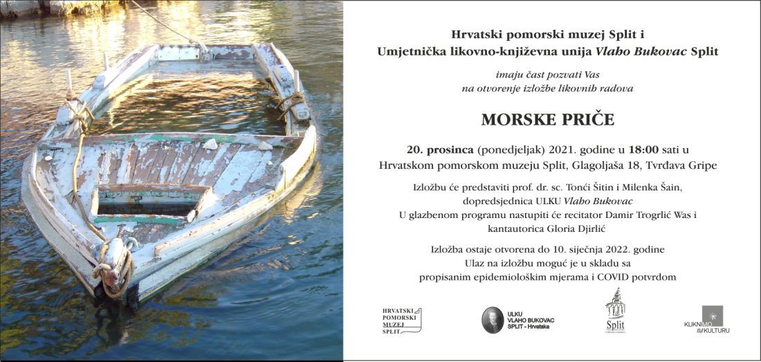 SPLIT – U Hrvatskom pomorskom muzeju Split najavljena je izložba likovnih radova MORSKE PRIČE, Umjetničko likovno-književne unije Vlaho Bukovac iz Splita.