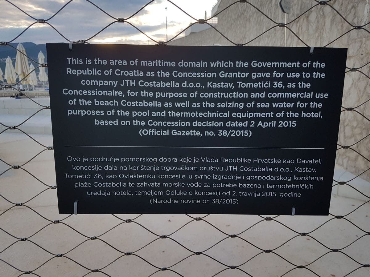 Odgovor je: Djelomično i iznimno za ovu i još nekolicinu plaža na Jadranu. Točnije, njih 18. Naime, prije tri godine Morski HR je ekskluzivno objavio popis plaža koje imaju sklopljene koncesije s mogućnošću ograđivanja i/ili naplate ulaza. Ti ugovori moraju se ispoštovati do isteka koncesije, a u riječkom slučaju hotel je doslovno uhvatio zadnji vlak za koncesiju prije donošenja novog Zakona koji takvo što više nipošto ne dopušta: