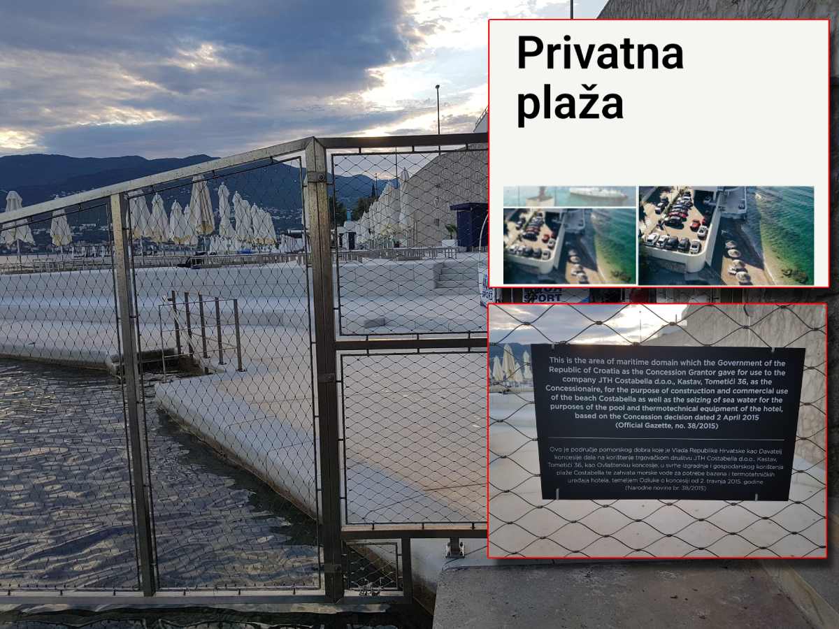 Plaža Kostabela, Rijeka – mogućnost ograđivanja, ali bez mogućnosti naplate ulaza ovlaštenik koncesije JTH Costabellad.o.o. koncesija traje do 5.11.2045. godine.