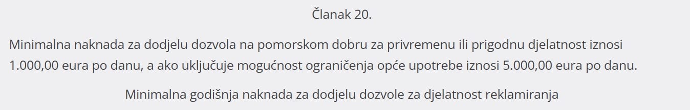 Zašto organizator, odnosno Općina i Turistička zajednica Vela luka već drugu godinu zaredom protivno Uredbi o vrstama djelatnosti i visini minimalne naknade za dodjelu dozvola na pomorskom dobru istu ne plaća - članak 20. Minimalna naknada za dodjelu dozvola na pomorskom dobru za privremenu ili prigodnu djelatnost iznosi 1.000,00 eura po danu, a ako uključuje mogućnost ograničenja opće upotrebe iznosi 5.000,00 eura po danu, a čime državi zbog zauzetosti pomorskog dobra i ograničenju opće upotrebe, izmiče dobit od minimalno 50 tisuća eura?