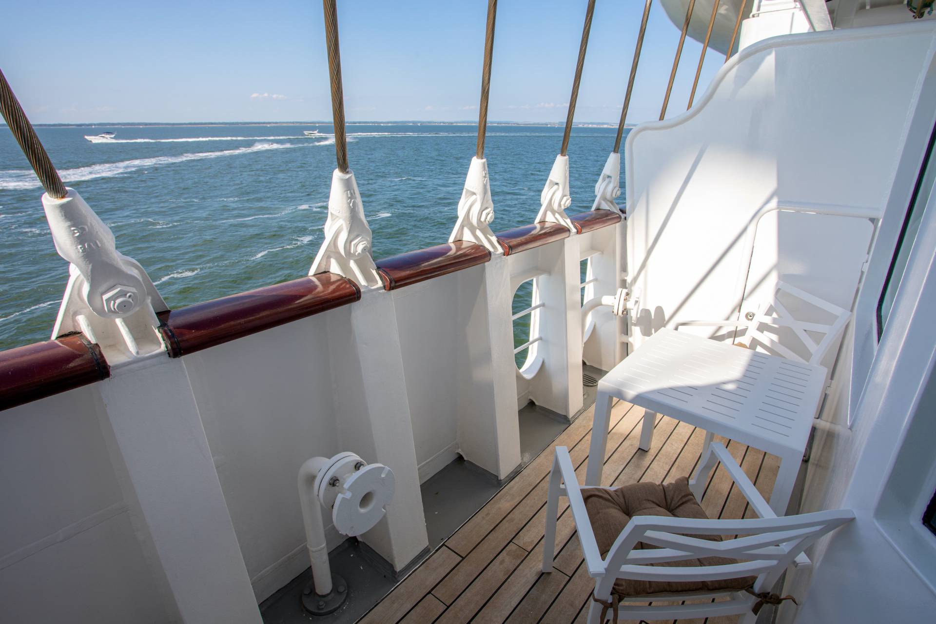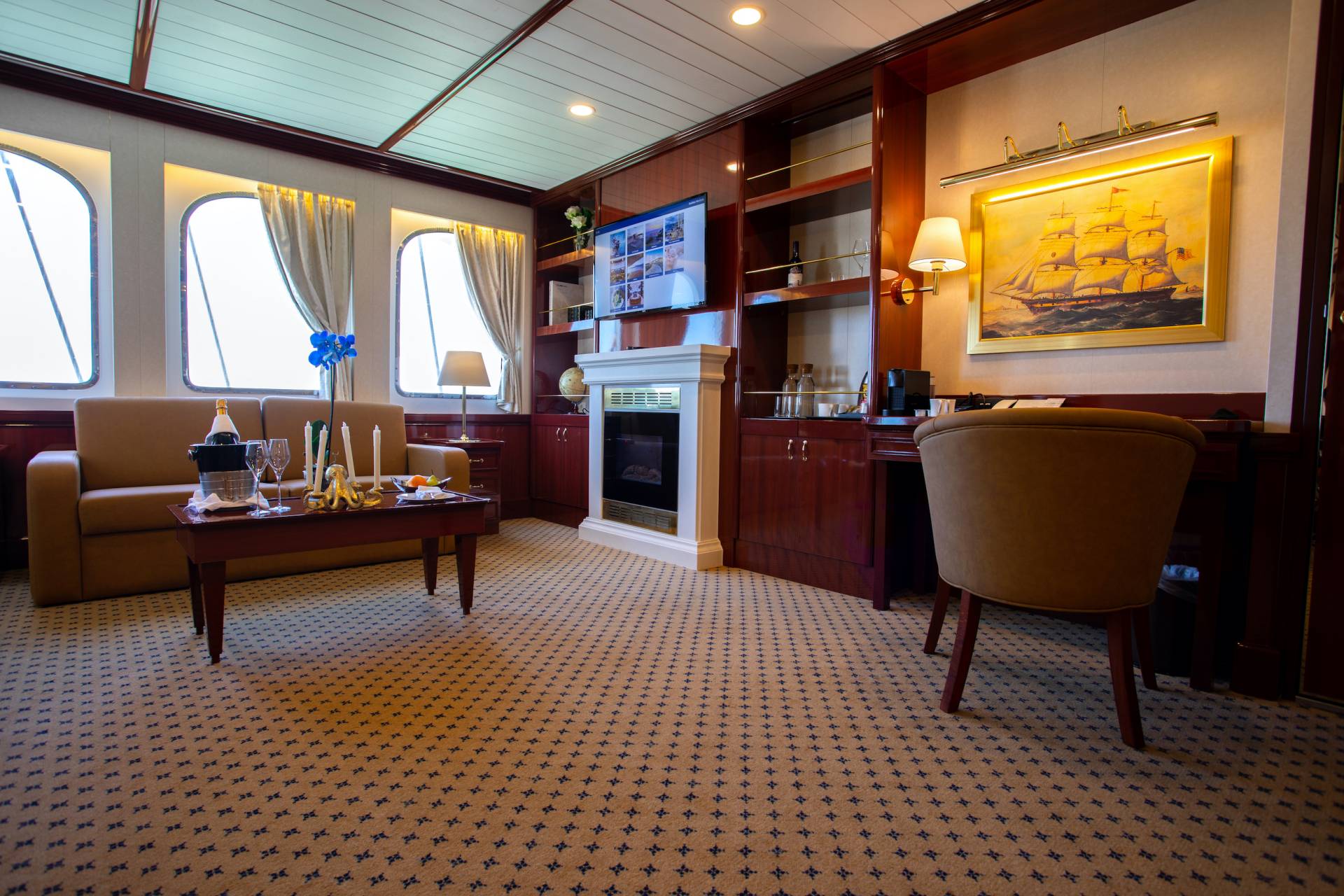 Brod je raskošno uređen, ali još uvijek ima šarm i atmosferu starog jedrenjaka. Ima pet paluba, kozmetički centar, saunu, jacuzzi, spa i fitness centar, knjižnicu i nekoliko velikih salona, opisuje Qatar Tribune.