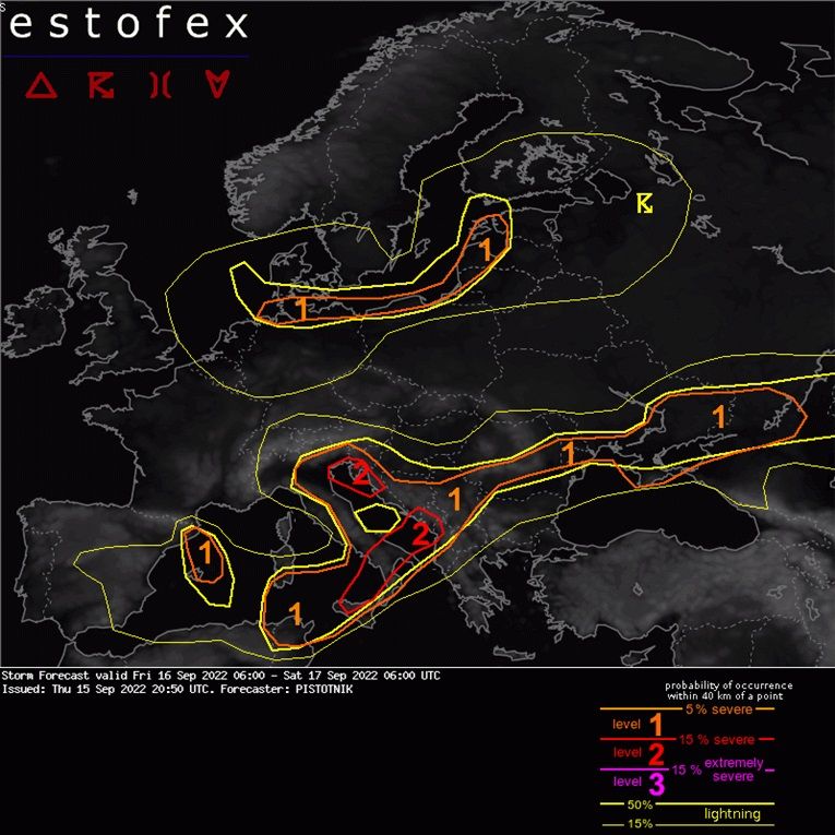 Opasnost od vremenskih nepogoda proširit će se danas na Jadran, pa je tako i Europski sustav upozorenja na oluje ESTOFEX, izdao je drugi stupanj upozorenja za područje sjevernog i južnog Jadrana, dok je za ostatak Hrvatske na snazi upozorenje prvog stupnja. Očekuju se obilne oborine, jaki udari vjetra, velika tuča, a moguće su i pijavice, piše Estofex.