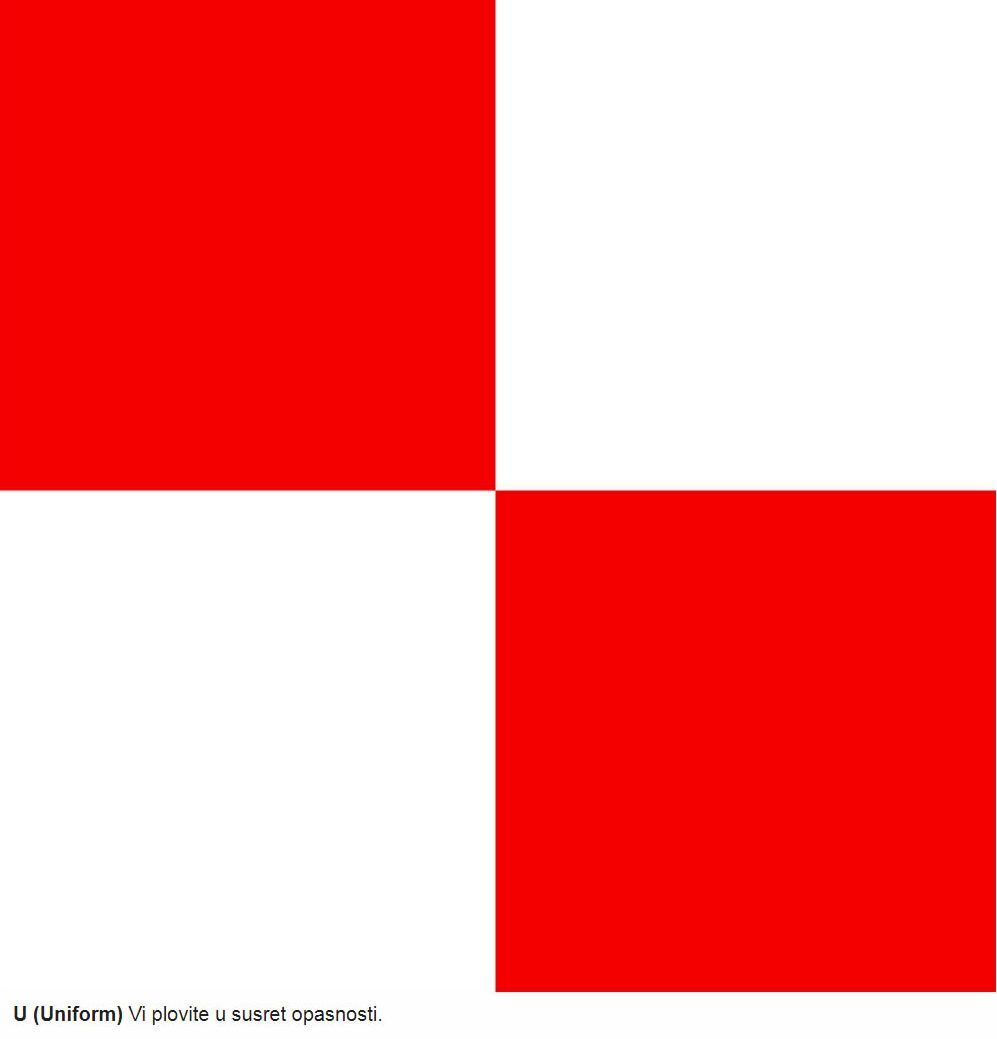 Ipak, netko je, slučajno ili ne, u bojama hrvatskih kvadratića u smjeru mora ostavio pomorski signal. Naime crveni i bijeli kvadrat, ispod kojeg su bijeli i crveni kvadrat, u sustavu međunarodnih pomorskih signalnih zastava označava slovo “U” ili poruku: “Vi plovite u susret opasnosti”.