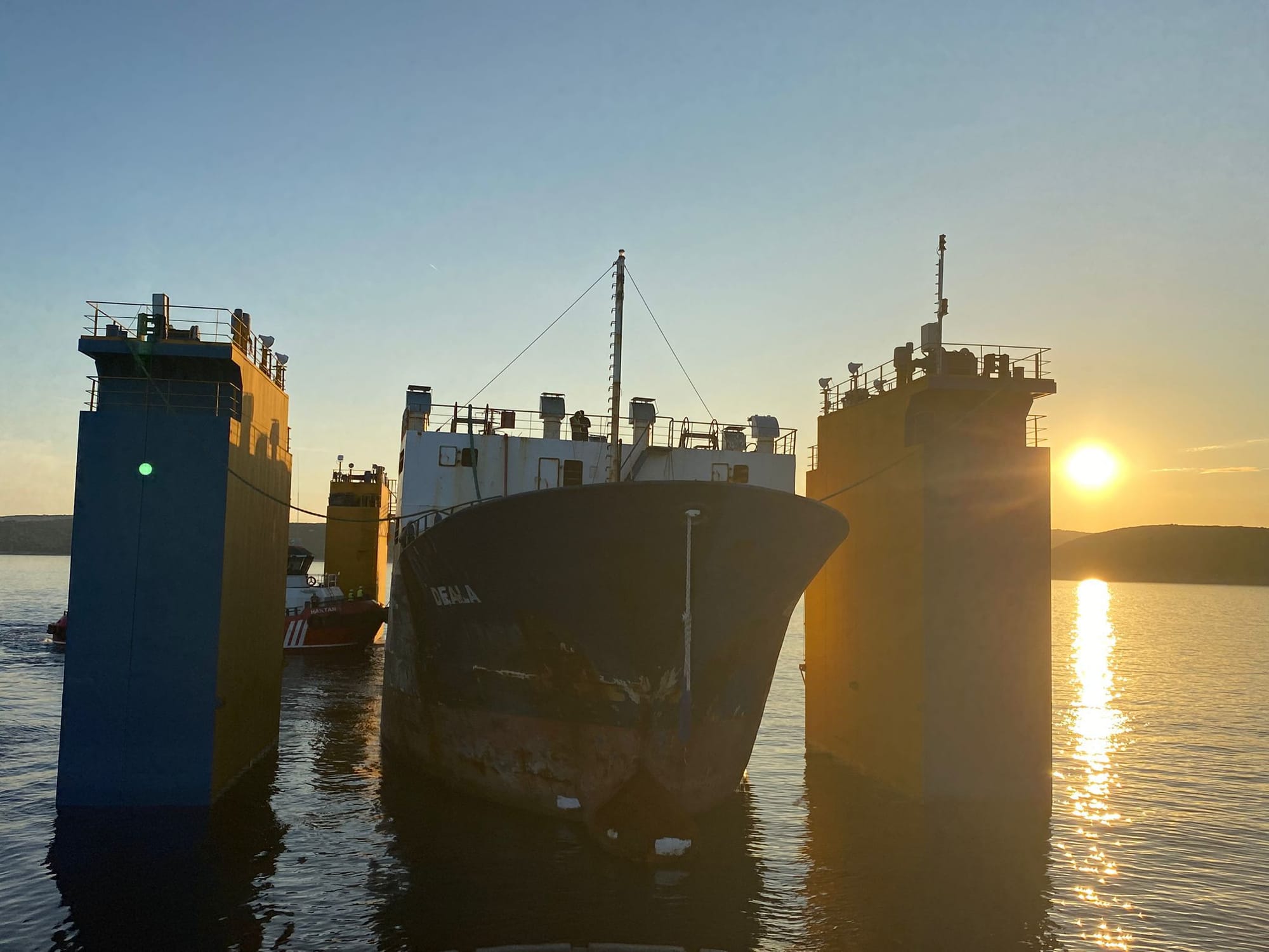 U večernjim satima u utorak, 22. srpnja 2025. brod „Deala“ dotegljen je s pozicije nasukanja u plutajući dok. Time je završena pretposljednja i ključna faza na uklanjanju ovog broda koji je plovio pod tanzanijskom zastavom, a koji se od trenutka nasukanja nalazio na ulazu u Raški zaljev.