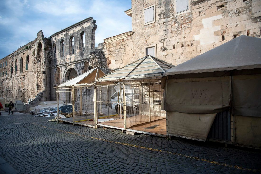 Podno istočnih zidina Dioklecijanove palače uskoro više neće biti niti jednog od stotinjak montažnih konstrukcija na kojima se godinama prodavala odjeća i suveniri. Tvrtka Parkovi i nasadi marljivo radi na uklanjanju stotinjak štandova s lokacije kojoj se, prema riječima prvog čovjeka Splita, želi vratiti živost i pravi mediteranski štih. O tome se gradska vlast pohvalila i na službenoj Facebook stranici.