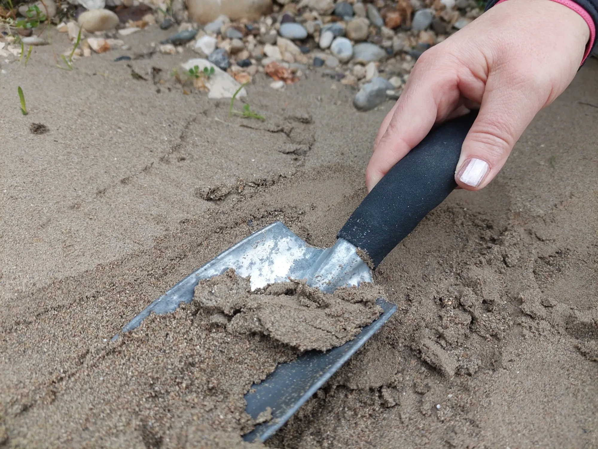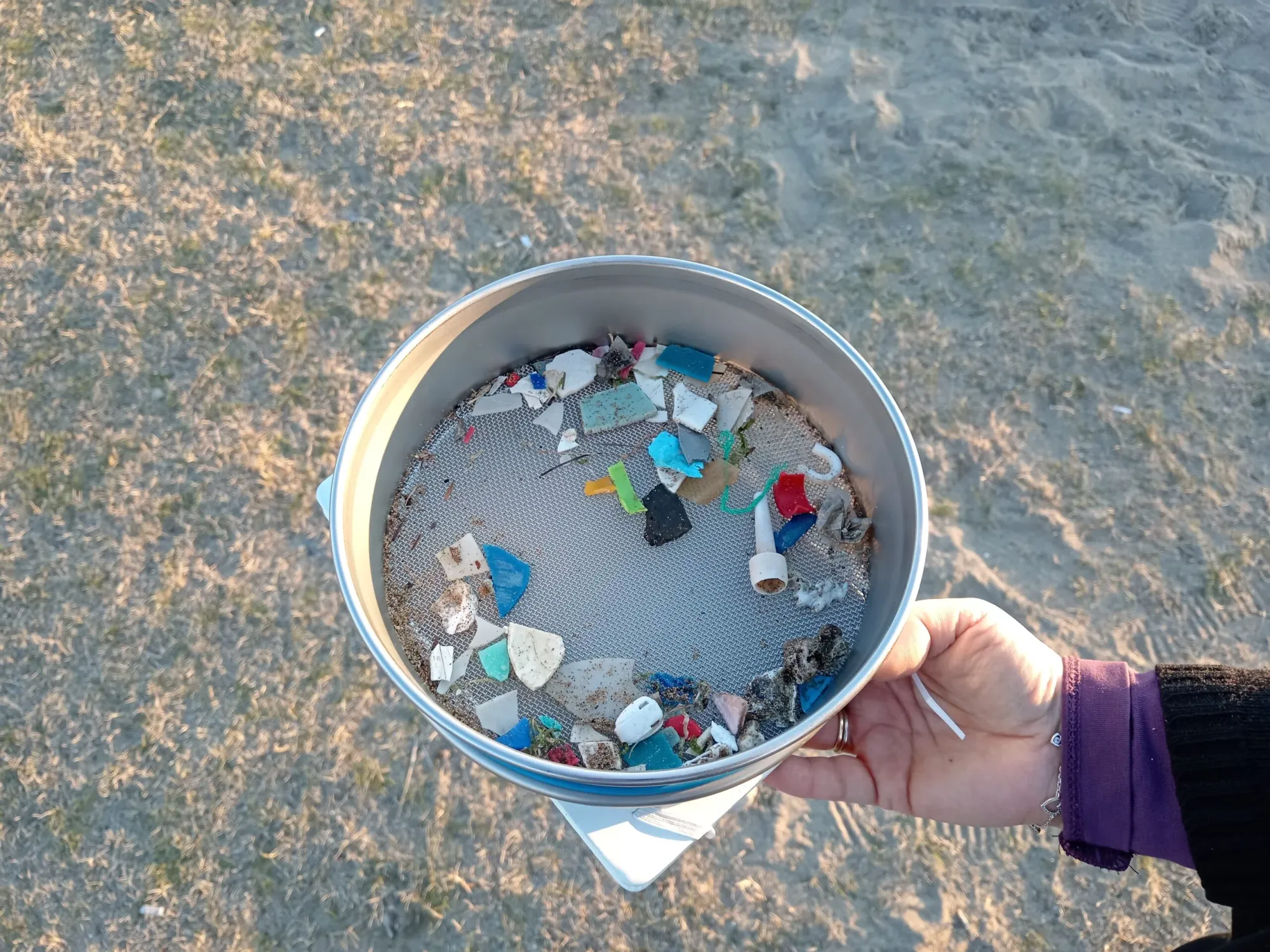 Praćenje mikroplastike u pješčanom sedimentu na obali rijeke obavlja se na način da se na nekoliko mjesta na obali veličine 1 m² izvrši prosijavanje površinskog sloja pijeska u debljini od 5 cm kroz metalna sita različitih promjera, pri čemu se zadržava materijal koji ostaje na situ. Praćenje mikroplastike i mezootpada na površini vode provodi se površinskom plutajućom planktonskom mrežom zvanom manta mreža, zbog sličnosti s istoimenom ražom. Manta mreža spušta se na površinu rijeke s otvorom okrenutim prema toku rijeke te se u razdoblju od 30 minuta, prolaskom vode kroz mrežu, prikupljaju uzorci mikroplastike i makrootpada.