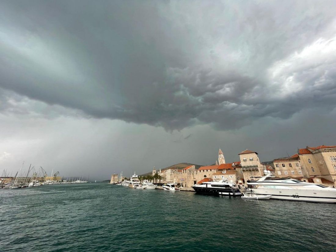 Kako je bilo najavljeno, u jutarnjim satima ciklona i fronta su stigle do Dalmacije i mjestimice donijeli kišu, pljuskove i grmljavinu, a ponegdje je bilo jačeg grmljavinskog nevremena s tučom.