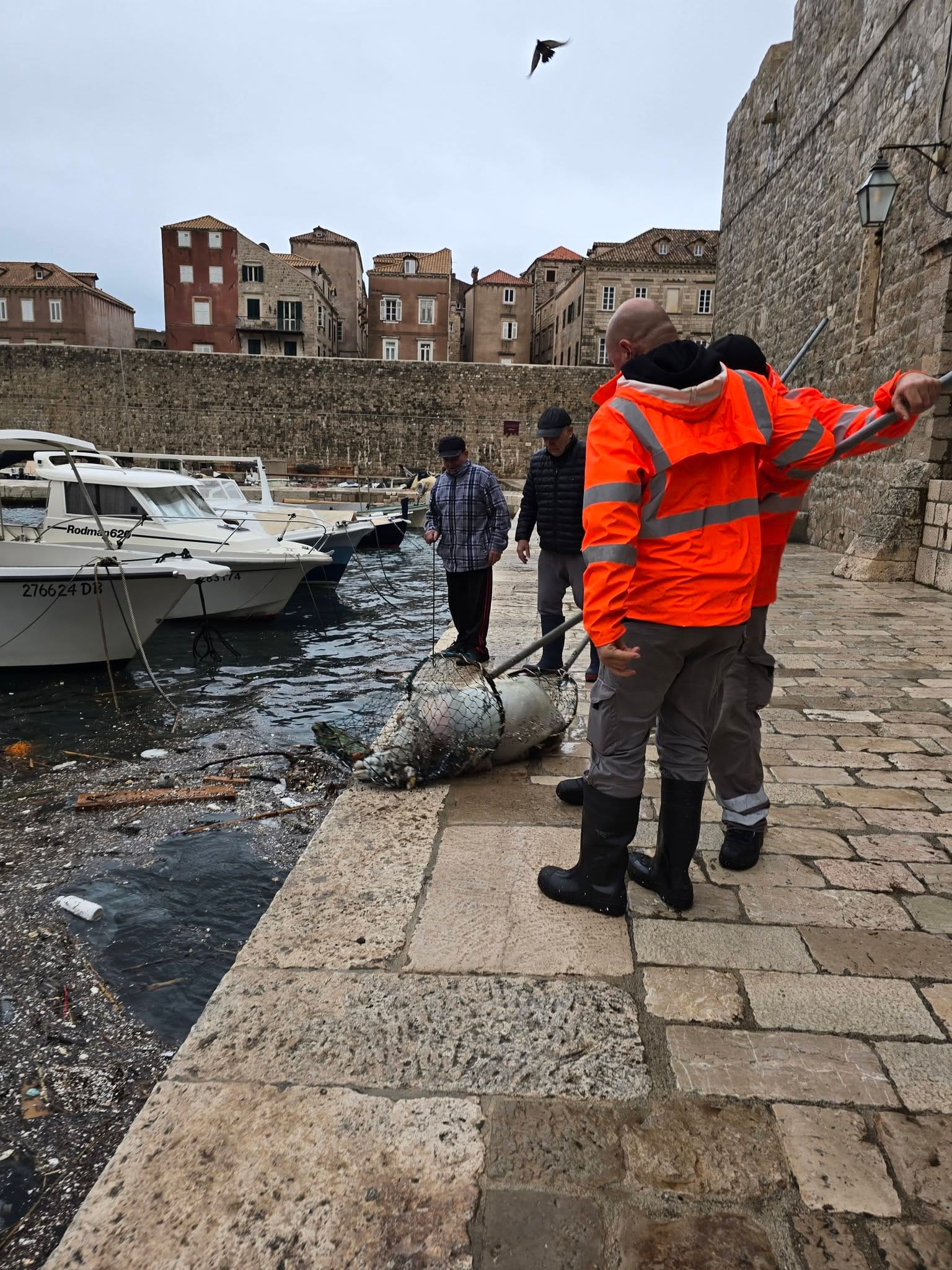 Snažan vjetar i jako kiša nanijele su gomile otpada na što su Dubrovčani na žalost već navikli. No, osim onaj uobičajeni otpada poput platične ambalaža, ovaj su put djelatnici Čistoće morali izvlačiti i životinjske lešine. Na fotografijama Facebook grupe Gradski kotar Grad vidljivo je kako u moru plutaju ovca i krava, a radnici ih potom iz mora i izvlače.
