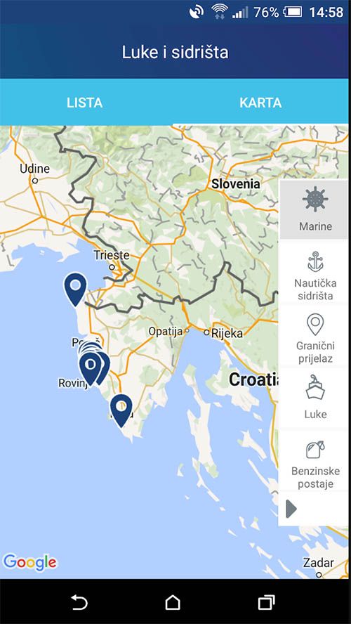 Luke i sidrišta (uključuje podatke o marinama, nautičkim sidrištima, benzinskim postajama, graničnim prijelazima)