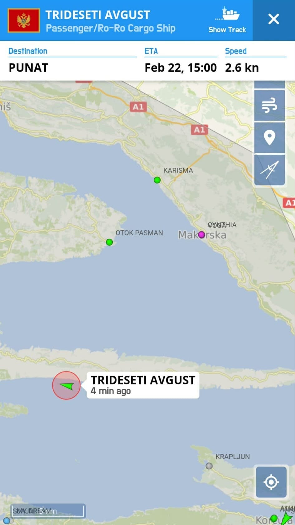 Na servisu MarineTraffic u četvrtak navečer crnogorski brod vodio se kao da ima pogon, no bilo je vidljivo da se kreće iznimno malom brzinom. Kako doznaje Dalmacija Danas, malo prije dva sata u noći s četvrtka na petak, brod je stigao u luku Stari Grad, gdje se i jutros nalazi.