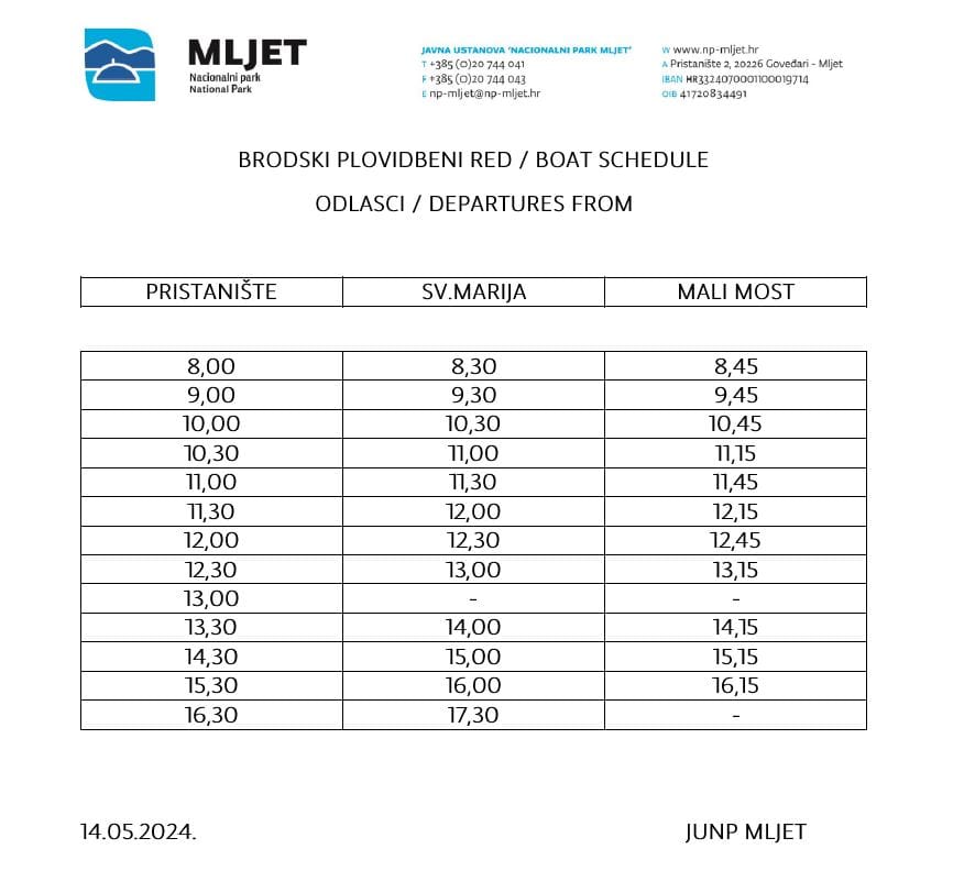 Nacionalni park Mljet objavio je novi raspored plovidbe za otočić unutar mljetskog Velikog jezera, velike atrakcije našeg najjužnijeg nacionalnog parka.