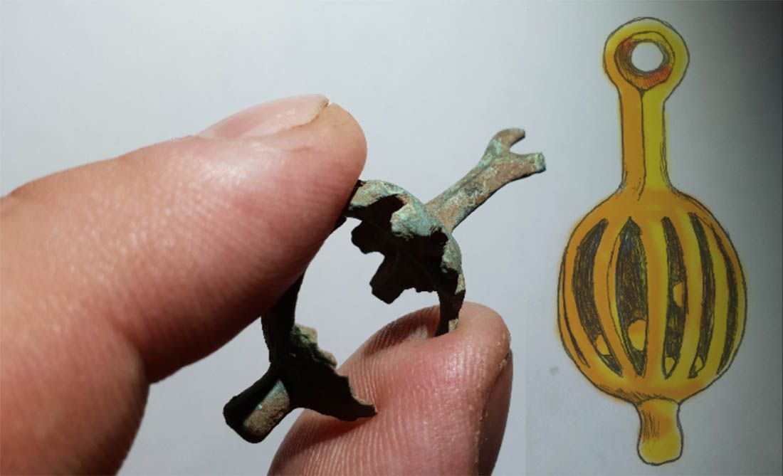 Posebno je značajan nalaz brončanoga praporca sačuvanoga u dva dijela, a koji je originalno izgledao kao košarica s deset rešetki u kojemu je bilo nekoliko brončanih kuglica.