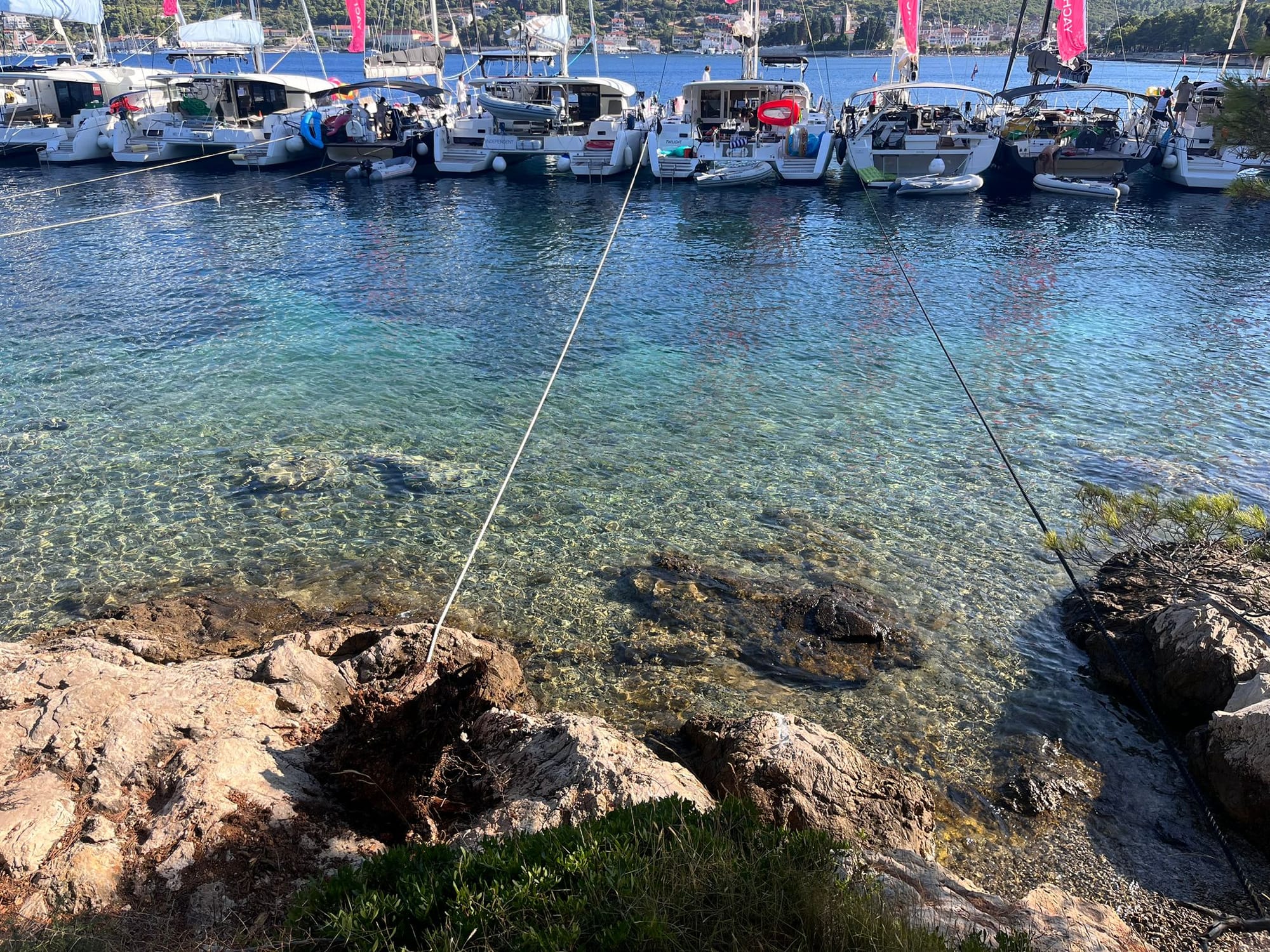 - Čak 17 jedrilica Yacht weeka zavezalo se za drveće i kamenje tik uz obalu na FKK plažu u gradu Visu - kaže čitateljica koja nije mogla normalno hodati obalom od konopa, ali se ni kupati.