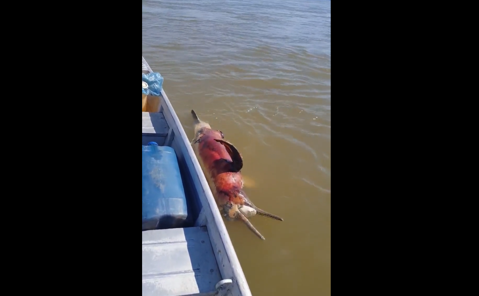 Came across a dead pink dolphin while crossing the Tapajos River inside Brazil's Amazon Rainforest after filming inside the Mundurku tribe's protected reserve.