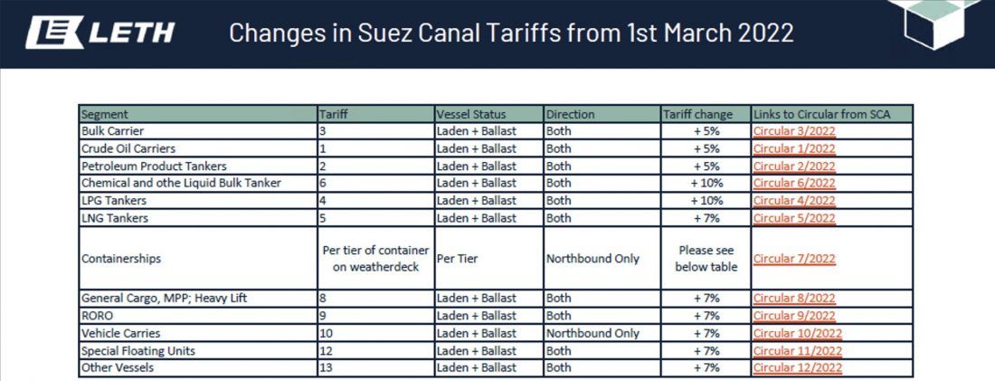 Dok cijeli svijet sa strepnjom promatra što se događa u Ukrajini, čije luke su do dalnjega zatvorene za promet, egipatska uprava za Sueski kanal jučer je priopćila da od sutra, 1. ožujka, povećava cijenu vozarina za teretna plovila i plovila s balastom za 10%.