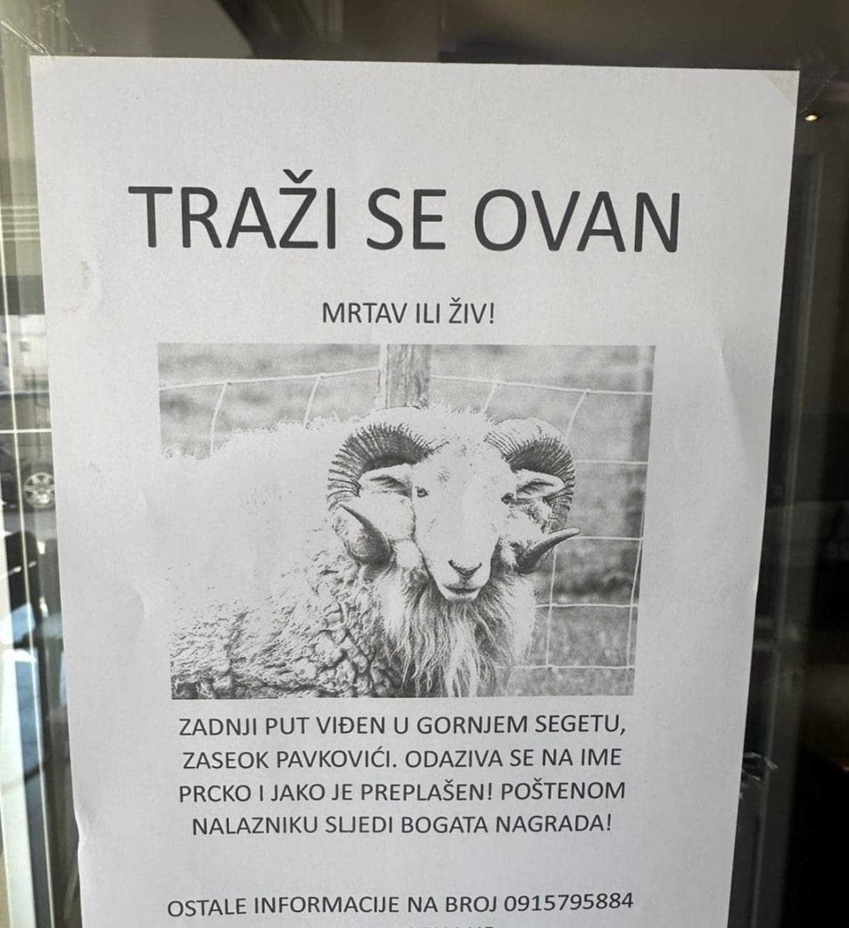 Stanovnici Segeta ovih su dana dobili neuobičajeni zadatak – pronaći odbjeglog ovna imena Prcko, koji je, prema riječima vlasnika, nestao noć prije nego što je trebao započeti sezonski posao rasplođivanja ovaca.