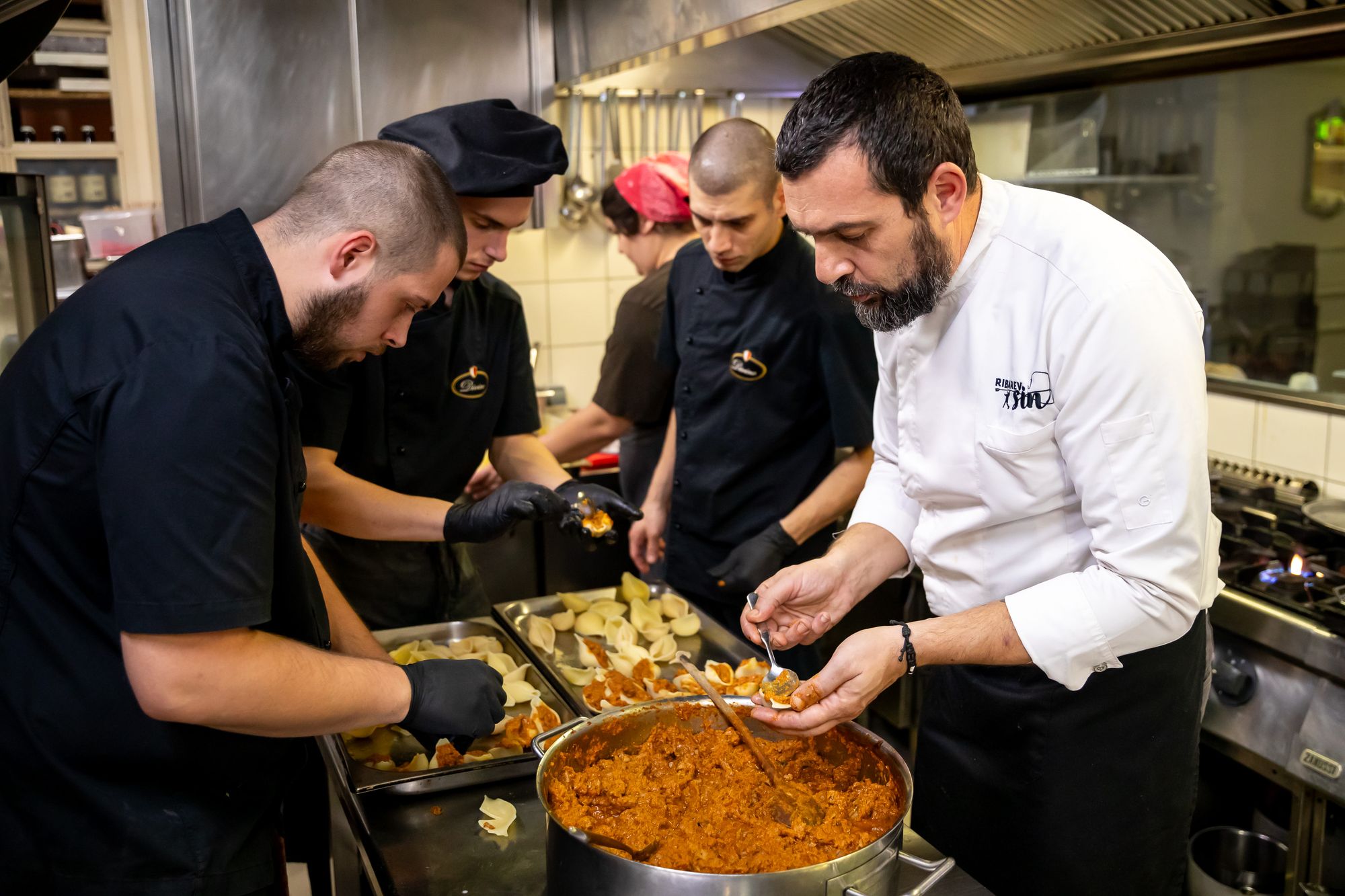 Kuhar večeri David Skoko, prezentirao je svoja jela, ujedno se ugodno družeći s odlično raspoloženim gostima restorana Divino. Večer je započela sa srdelama na savor te pinjolima na pireu od slanca, nastavila uz ragu od tune s conchiglionima i kremom od blitve, dok je za glavno jelo poslužena skuša confit s broskvom.