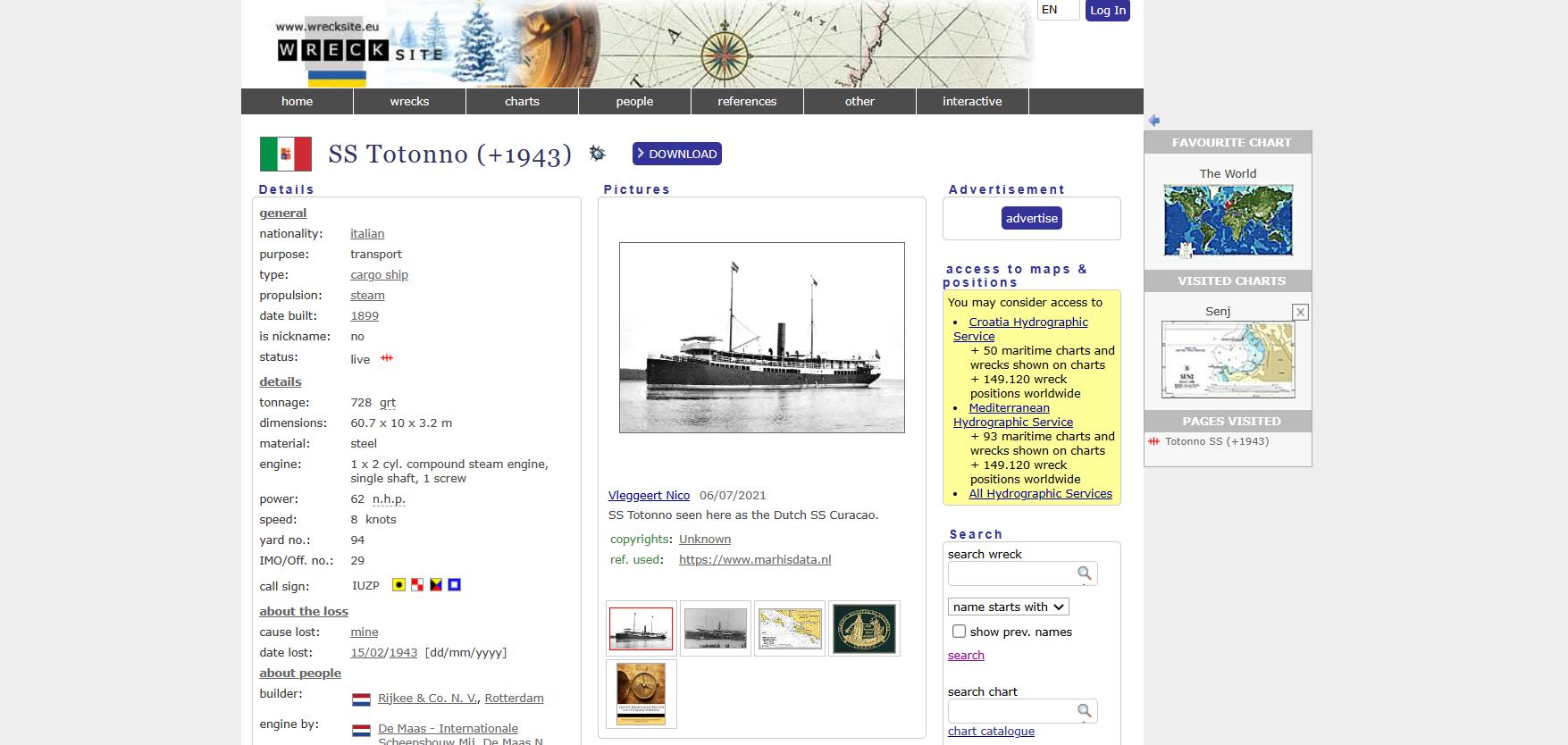 - Ovaj tekst objavljujem točno na 80. godišnjicu od potonuća. Također sam želio čitatelje informirati o njegovom pravom imenu, a to je TOTONNO s vojnom oznakom V83. Povijest je to parobroda koji je izgrađen u prosincu daleke 1899. godine, a i dalje nakon 123 godine postojan tu pored nas, ali nažalost kao podrtina. Taj mali teretni brodić duljine 60,7 metara je plovio iz Europe prema Južnoj i Sjevernoj Americi i natrag po svim uvjetima nemirnog Atlantika, što je danas nezamislivo uz današnje teretne brodove duljine do 400 metara - piše Ivo Batričević za Dubrovački dnevnik.