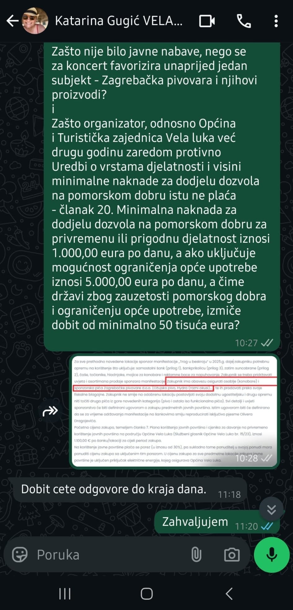 - Mi smo samo dio organizacije, zajedno s Općinom i Lučkom upravom. Znam da je na sastanku bio ravnatelj Lučke uprave i da se puno detalja moralo riješiti. E sad je li i taj dio oko koncesijske dozvole, ne mogu vam reći.