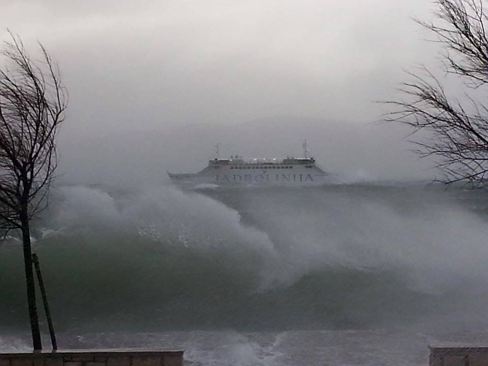 Olujno jugo koje mjestimično na udare puše do 55 čvorova, stvara valove na otvorenom moru 5 do 6. Stoga su i jutros problemi u prometu prema otocima.