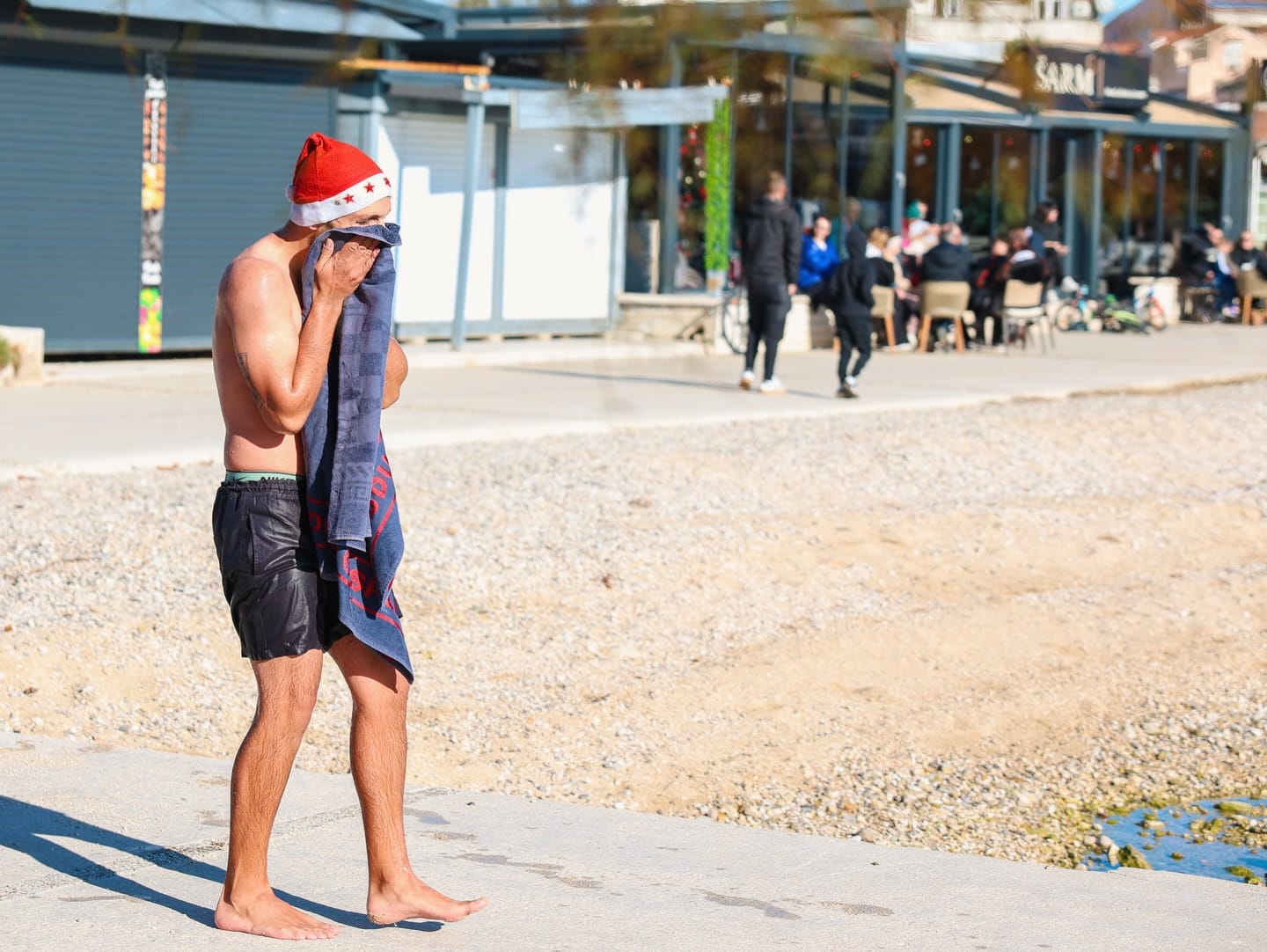 VODICE - Božićno kupanje u Vodicama već je postalo tradicionalno, pa se tako i ovog Božića skupina Vodičana ohrabrila na skok u burom okupano more.