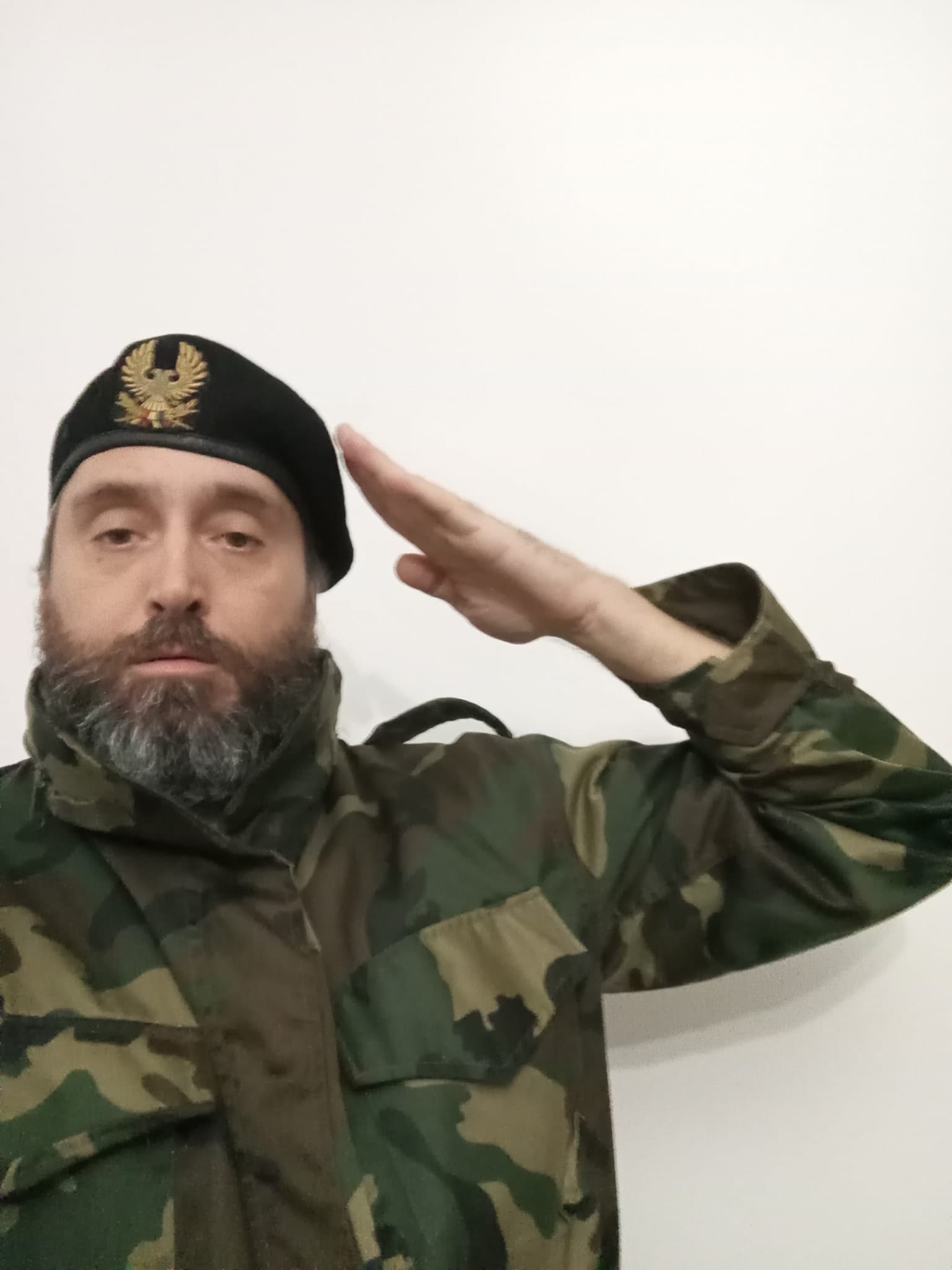 Načešće se skriva iza automobila i fotografira u četničkoj šubari s podignuta tri prsta, a objavljuje i fotografije ratnih zločinaca Mile Martića, kapetana Dragana i slično. Na jednoj od fotografija maše srpskom zastavom na nekom dječjem igralištu ili parku.