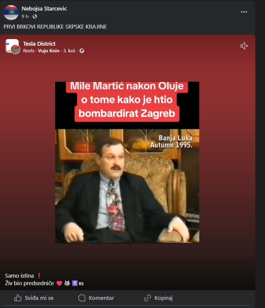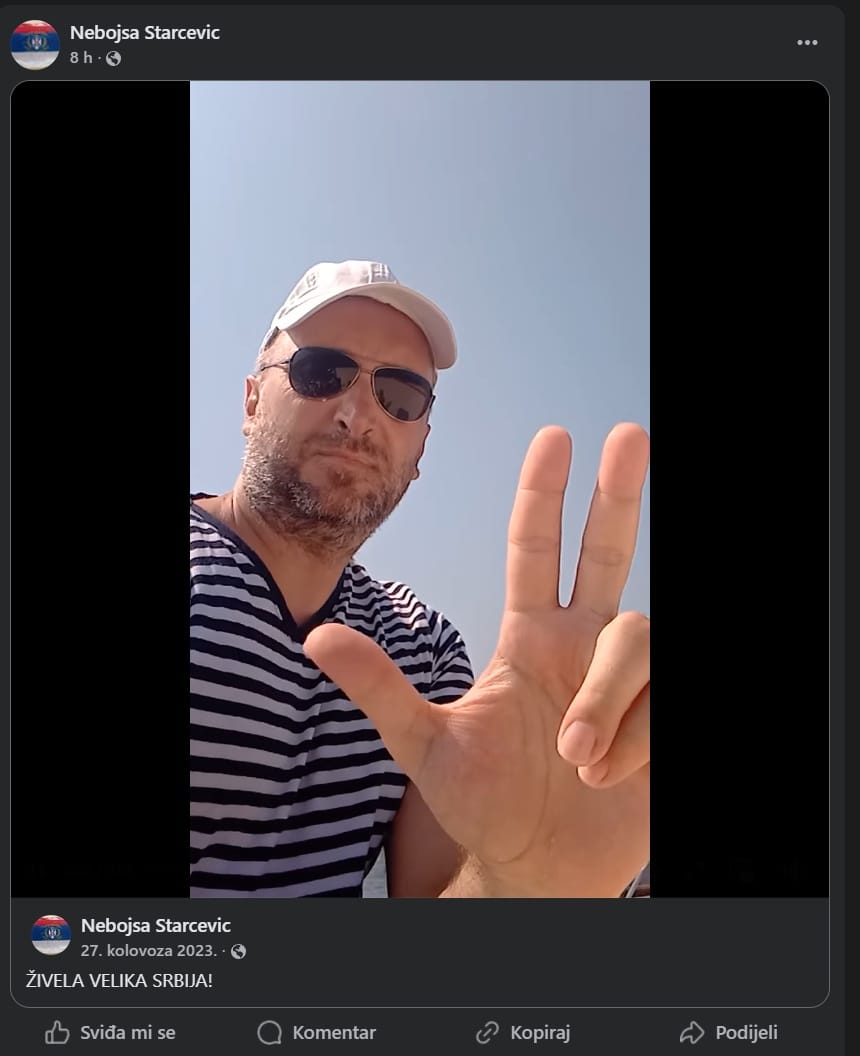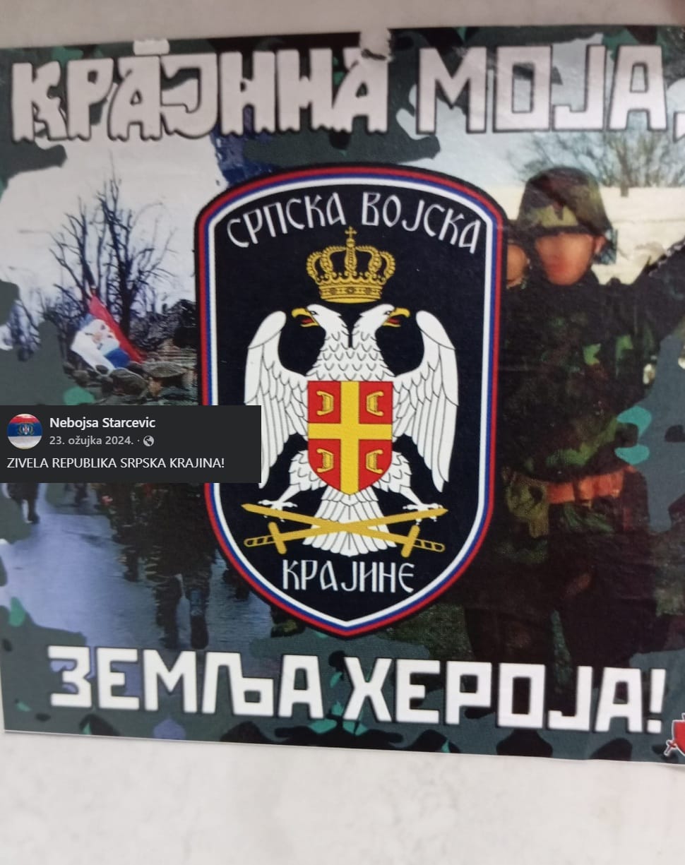 Drugi je Nebojša Starčević. Facebook profil prepun mu je fotografija u uniformi vojske tzv. krajine, gdje se slikao i sa svojim ocem koji je također bio u toj vojsci. A ima i fotografija gdje je na terenu za vrijeme Domovinskog rata, s oružjem u ruci, s kojim se borio na strani neprijateljske vojske.