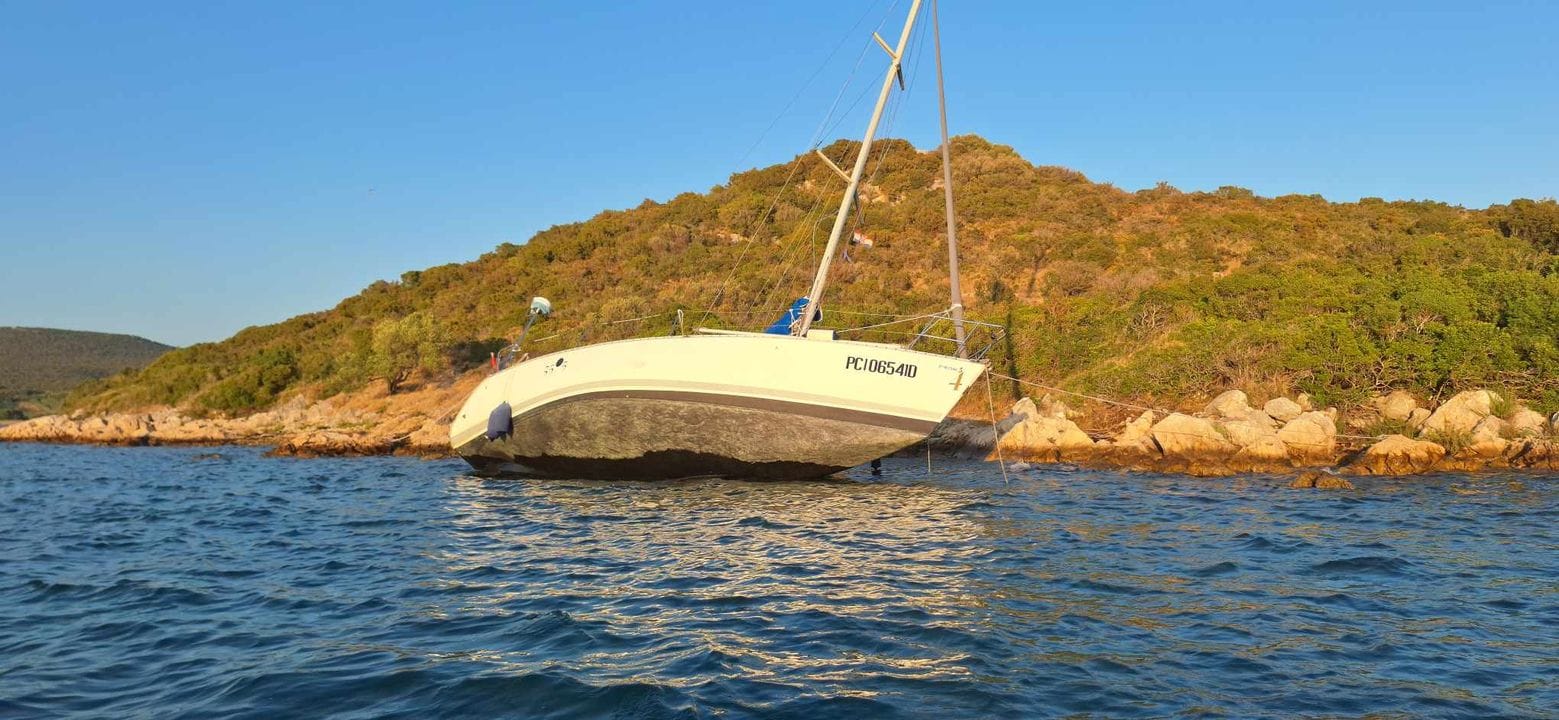 Radi se o jedrilici koja je plovila pod švicarskom zastavom, a prema izjavama čitatelja koji je snimio fotografije, obišli su je ljudi koji su je nasukali noćas.