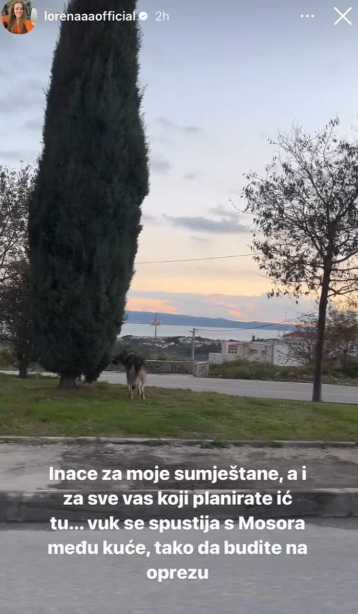 - Za sve moje sumještane - vuk se spustija s Mosora među kuće. Budite na oprezu - napisala je na Instagramu Lorena Bućan.