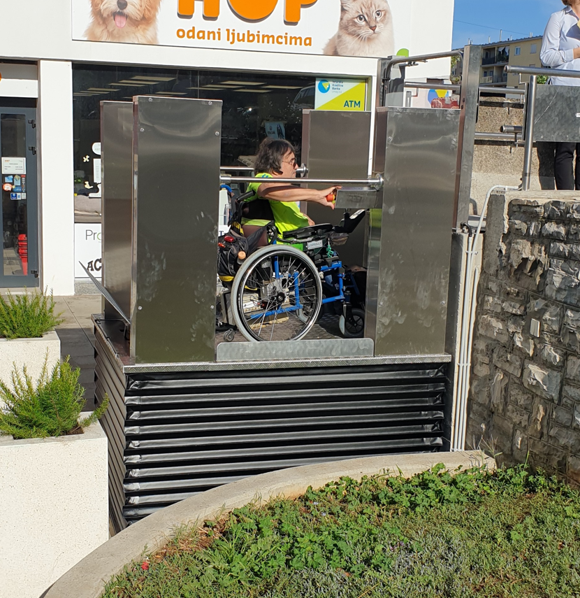 PULA - U petak su predstavnici Grada Pule zajedno s Društvom osoba s tjelesnim invaliditetom obišli novi platformski lift koji je u srijedu, 30. kolovoza uručen Gradu Puli i istoga dana montiran u Tomasinijevoj ulici na Verudi.