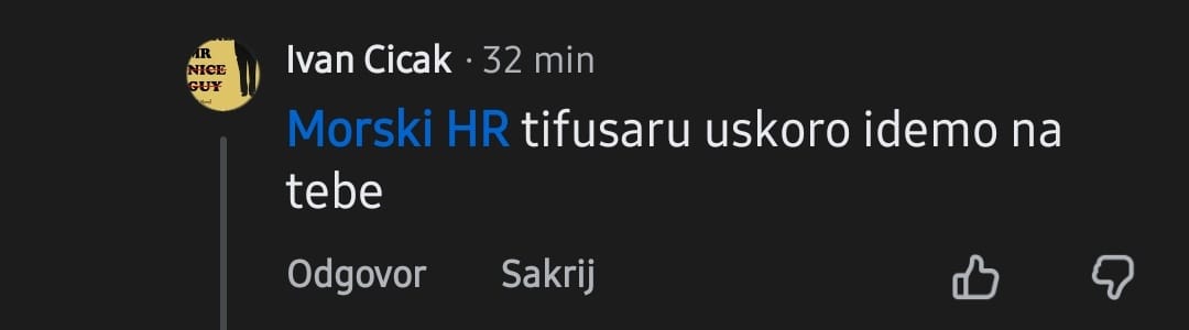 „Morski HR Ti i takvi kao ti ste potomci tifusara, doći će te svi na red, samo polako bez žurbe. Mislis ako se kriješ iza stranice da te ne možemo pronaći? Živi bili pa vidjeli.“