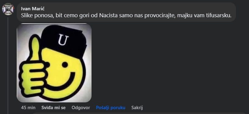 "Slike ponosa, bit cemo gori od Nacista samo nas provocirajte, majku vam tifusarsku."