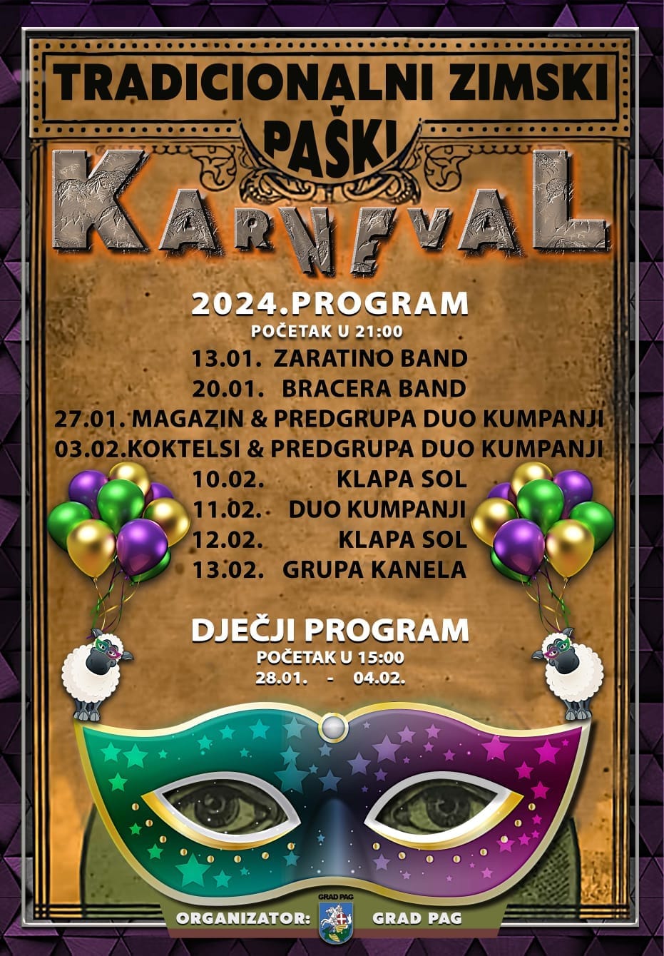PAG - U subotu 13. siječnja 2024. godine započeo je tradicionalni Paški zimski karneval.