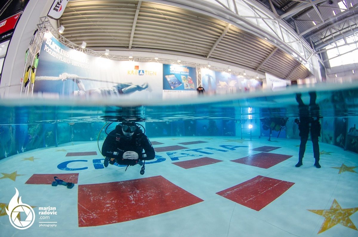 Zaronom u bazen Pogleda u plavo posjetitelji će imati priliku uživati u čarima i ljepotama ronjenja uz razgledavanje podvodne izložbe fotografija poznatog hrvatskog podvodnog fotografa, Marjana Radovića koja se nalazi na unutarnjim stranicama bazena, prikazuje ljepote hrvatskog podmorja te pridonosi stvarnom doživljaju dubine.