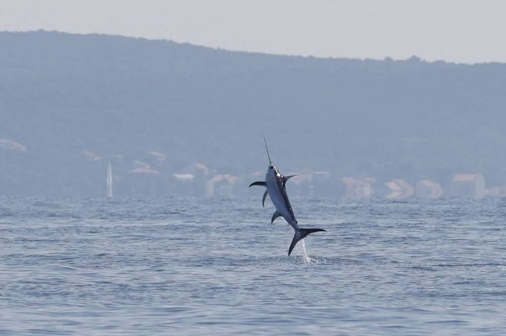Sabljarka je svojim skokom iz mora priredila pravi spektakl, a ova nevjerojatna scena zabilježena je na fotografiji koja će dugo ostati u sjećanju a koju je objavio Plavi institut na svojoj Facebook stranici Blue World Institute.