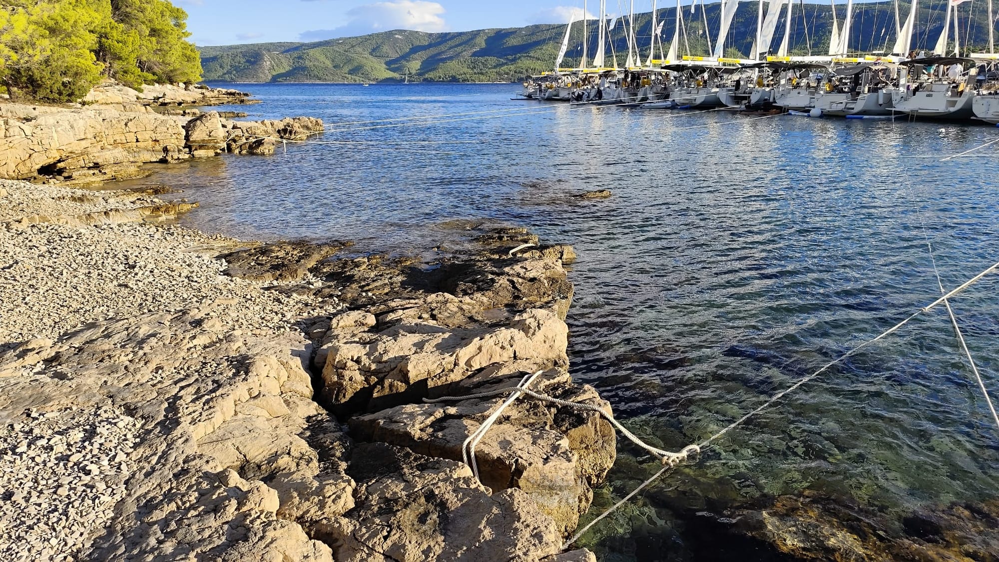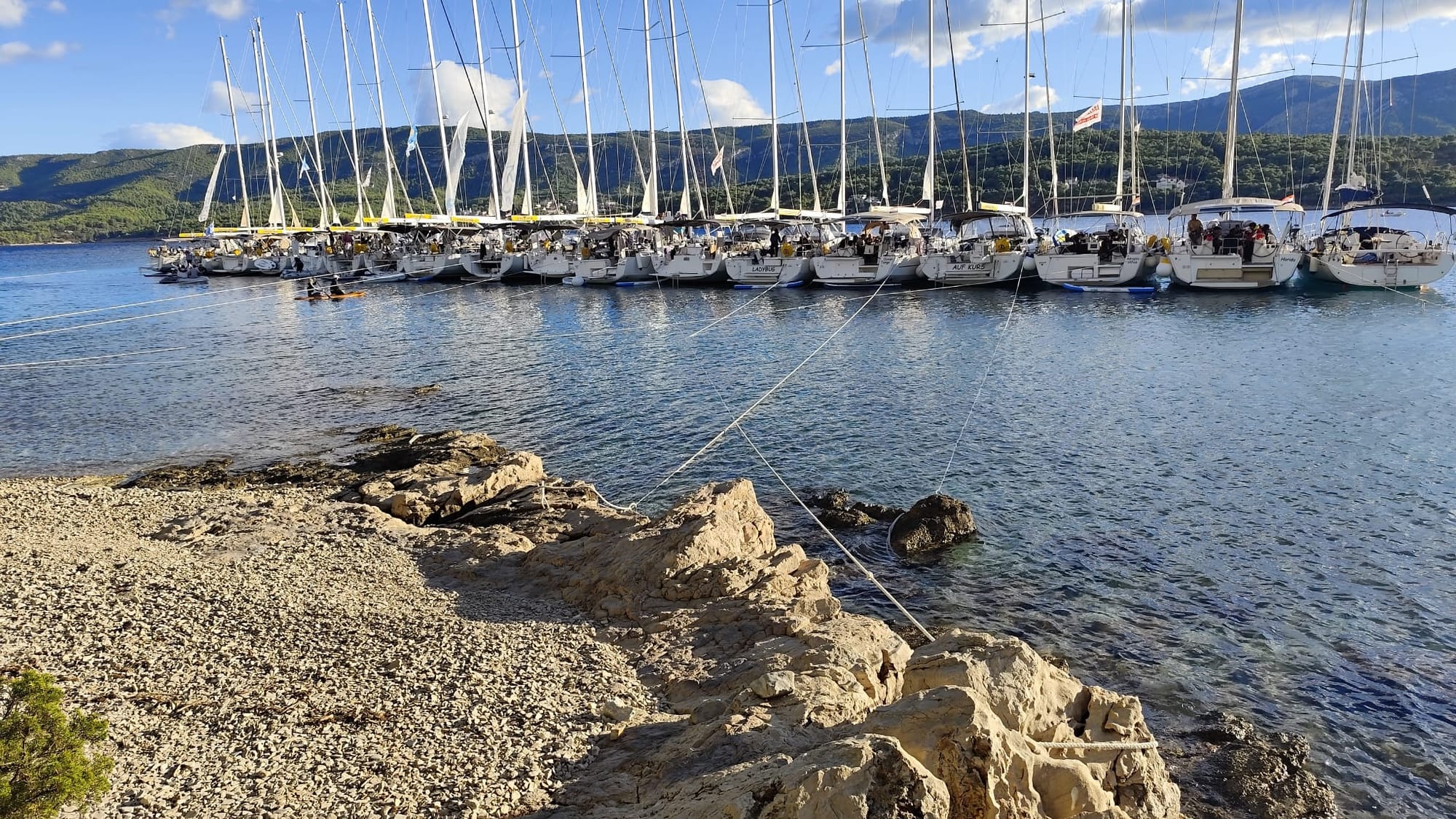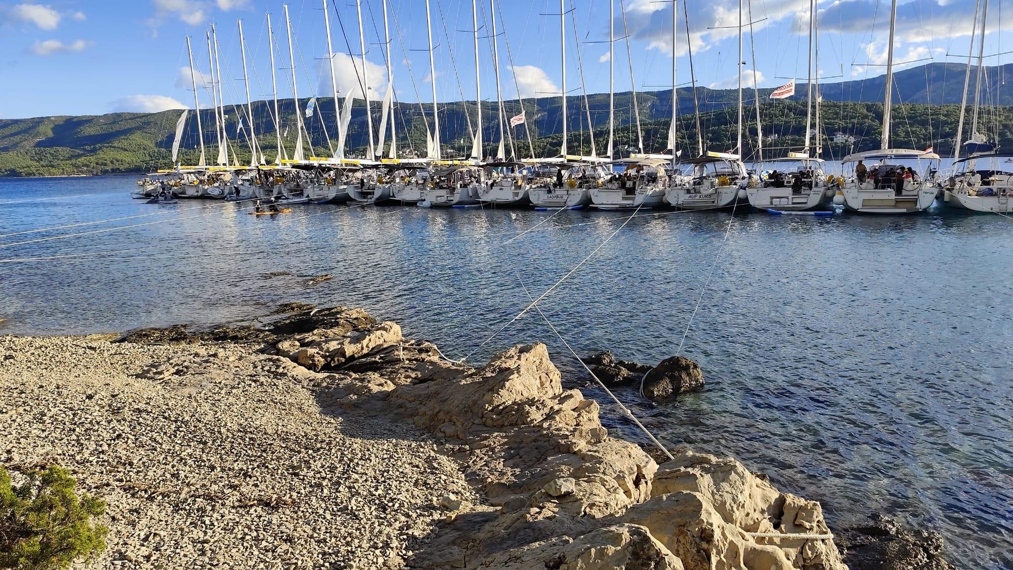 VRBOSKA - Kod Vrboske na Hvaru prizor koji lokalcima već nije stran. Umjesto u marini ili luci, nautičari se naredali kao sardine u uvali, privezujući se kako tko stigne.