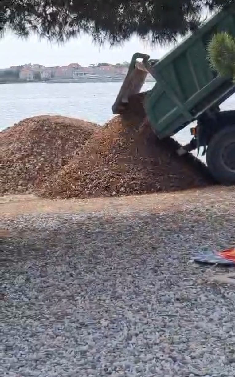 Nedugo nakon našeg razgovora, snimljeni su bageri kako istovjetan materijal s hrpa ispred vodičkog hotela jednostavno guraju u more, koje smo priložili za dokazni postupak u kaznenoj prijavi.