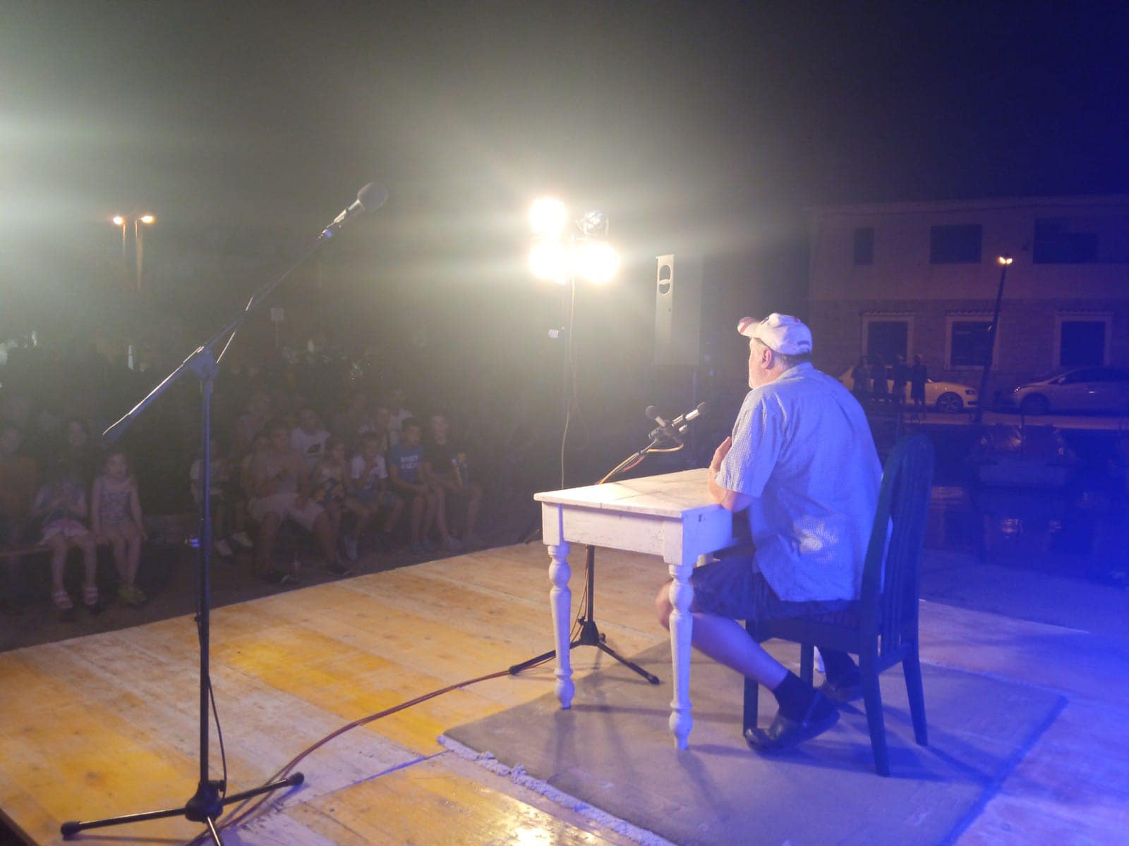ŽIRJE - Poznata izreka "Što južnije to tužnije" nije naišla na plodno tlo prošlu subotu na Žirju, najudaljenijem naseljenom otoku šibenskog arhipelaga. Naime, tu prošlu subotu 15.07. Enio Meštrović, popularni zadarski glumac i performer gostovao je sa svojom predstavom "Oči Uoči Zgospod'non" u uvali Muna na otoku Žirju, na otvorenom prostoru ispred "Starog malina".