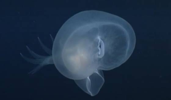 Ovo biće je zapravo morski puž koji pliva i svijetli, a prvi je put otkriven na dubini od 2614 metara, a zaslužni znanstvenici su Bruce Robison i Steven Haddock. Ovo se otkriće dogdilo doduše još 2000., no od onda je Institut proveo intenzivno istraživanje ne bi li ih bolje razumio. Došlo je do još 150 susreta s misterioznim morskim pužem koji živi u dubokim dijelovima oceana, tamnom svijetu o kojem se još uvijek ne zna dovoljno. Ta "ponoćna zona" oceana proteže se od 1000-4000 metara i skriva još puno misterija. Vjerojatno kao i ovaj svijetleći mekušac koji za razliku od drugih morskih puževa za hvatanje plijena ne koristi svoj hrapavi jezik već posebno razvijenu "kapuljaču" kojom zarobi svoju omiljenu hranu poput malih škampa.