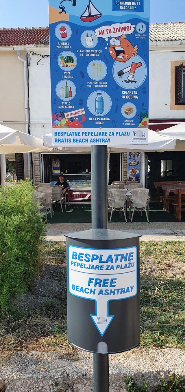 PAG – U organizaciji Turističke zajednice Grada Paga postavljeni su nosači sa info tablama i besplatnim pepeljarama na dvije lokacije na glavnoj gradskoj plaži Prosika u Pagu. Opušci od cigareta predstavljaju veliki ekološki i estetski problem na paškim plažama.