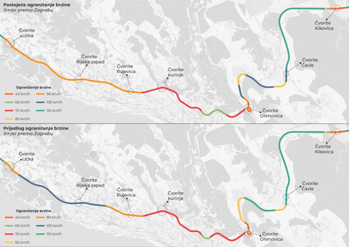 Hrvatske autoceste kroz projektna rješenja tražile su način povećanja protočnosti na ovim dionicama te je provedena novelacija postojećih ograničenja brzine. Rezultat je povećanje brzine za minimalno 10 km/h na pojedinim dionicama od čvora Orehovica do čvora Učka na A7 te od čvora Čavle do čvora Orehovica na A6. Iako zbog kompleksnosti terena i objekata na trasi nije bilo moguće postići značajno veće brzine, ovo povećanje omogućit će se bolju harmonizaciju prometnog toka bez negativnog utjecaja na sigurnost prometa, izvještavaju iz HAC-a.