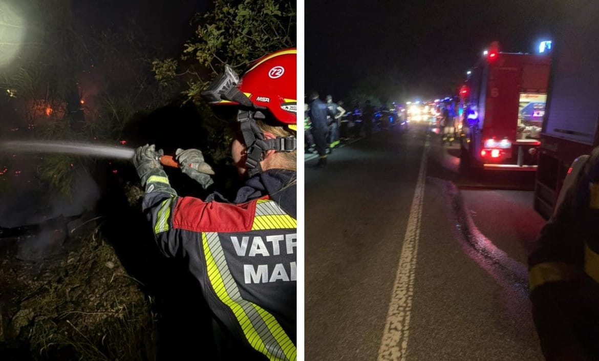 Nešto prije ponoći, stigla je dojava o požaru otvorenog prostora u ulici Mate Vladića u Makarskoj, na području Velikog Brda.