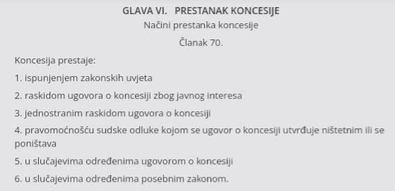 Inače prema članaku 70. Zakona o koncesijama, u slučaju pravomoćne sudske presude kojom se poništava ugovor o koncesiji, ista prestaje važiti po sili zakona.