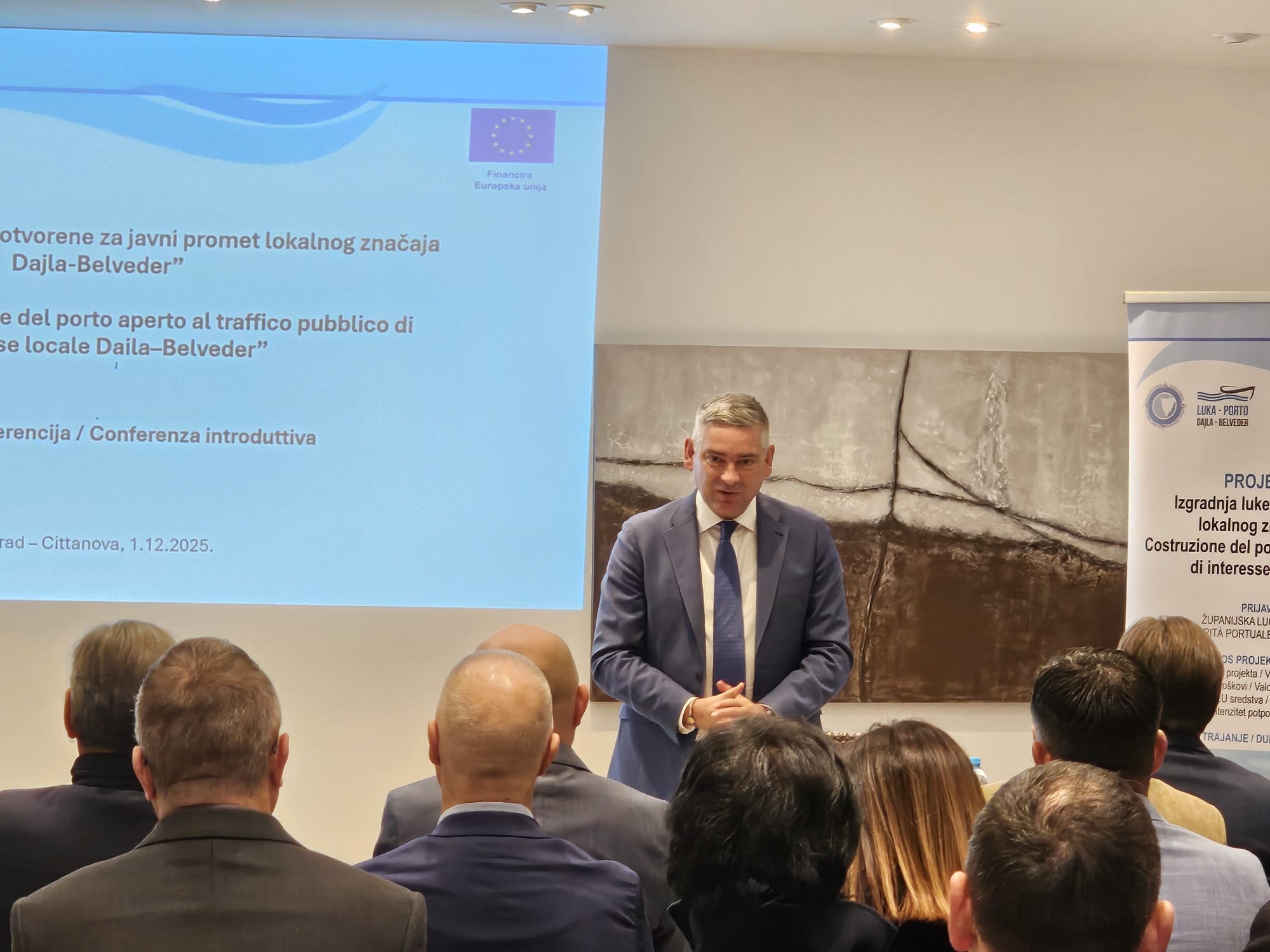 UMAG/NOVIGRAD - Županijska lučka uprava Umag–Novigrad, početnom konferencijm za javnost i medije održanoj u Novigradu predstavila je projekt „Izgradnja luke otvorene za javni promet lokalnog značaja Dajla–Belveder“.