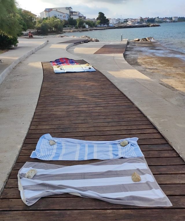 Komunalno redarstvo dobilo je pritužbe građana koji nisu mogli naći mjesto na plaži čak niti u rano jutro, jer je bila zauzeta ručnicima i ležaljkama „nevidljviih kupača". Neka mjesta zauzeli su turisti, a druga vlasnici apartmana, koji su na taj način čuvali mjesto svojim gostima. I morali su, budući da u oglasima često navode da apartman ima „privatna mjesta na plaži".
