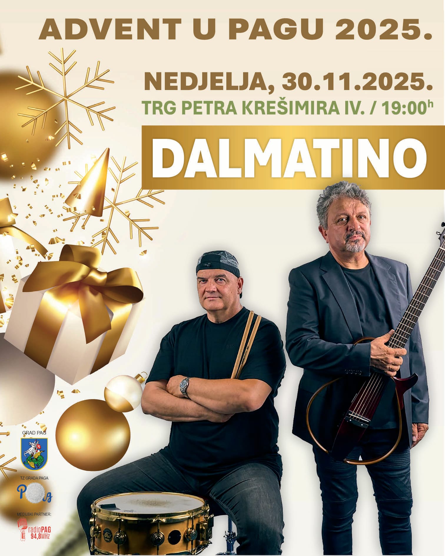 Grad Pag i Turistička zajednica grada Paga obavještavaju javnost da je došlo do promjene izvođača na koncertu povodom otvorenja Adventa u Pagu, koje će se održati u nedjelju, 30. studenoga, na Trgu Petra Krešimira IV (Pijaca). Zbog iznenadne bolesti najavljenog izvođača Matije Cveka, umjesto njega nastupit će