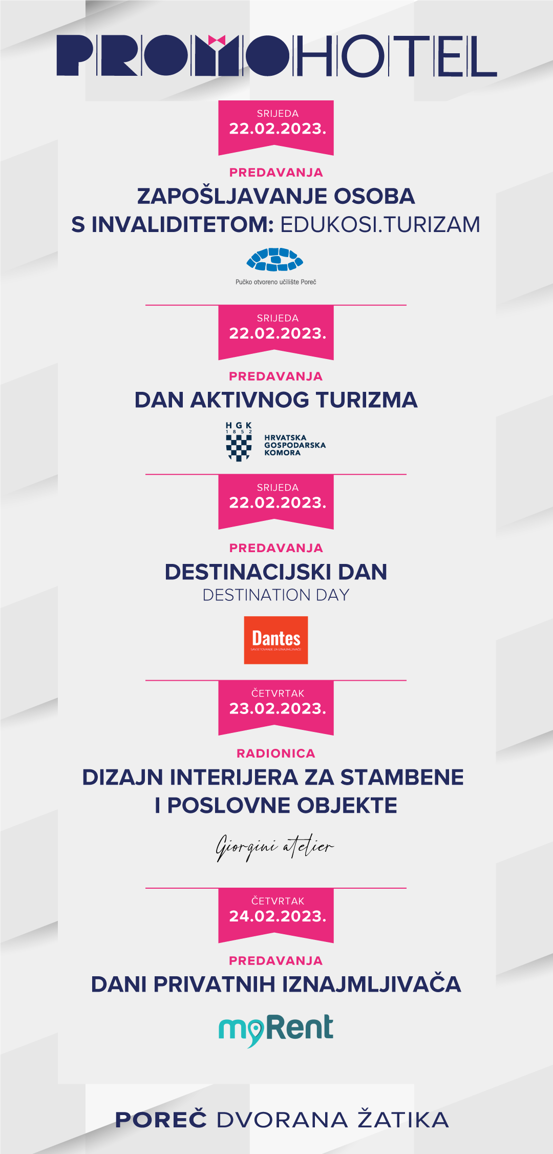 Poreč, višegodišnji prvak hrvatskog turizma u svom gospodarskom i turističkom razvoju, bit će destinacija dragocjenih poslovnih susreta. Sajam Promohotel na jednom mjestu okupit će 160 izlagača iz Hrvatske i susjednih zemalja, a koji će predstaviti više od 500 svjetskih brandova iz HoReCa sektora na prostoru od 4500 m2 unutrašnjeg izložbenog prostora.