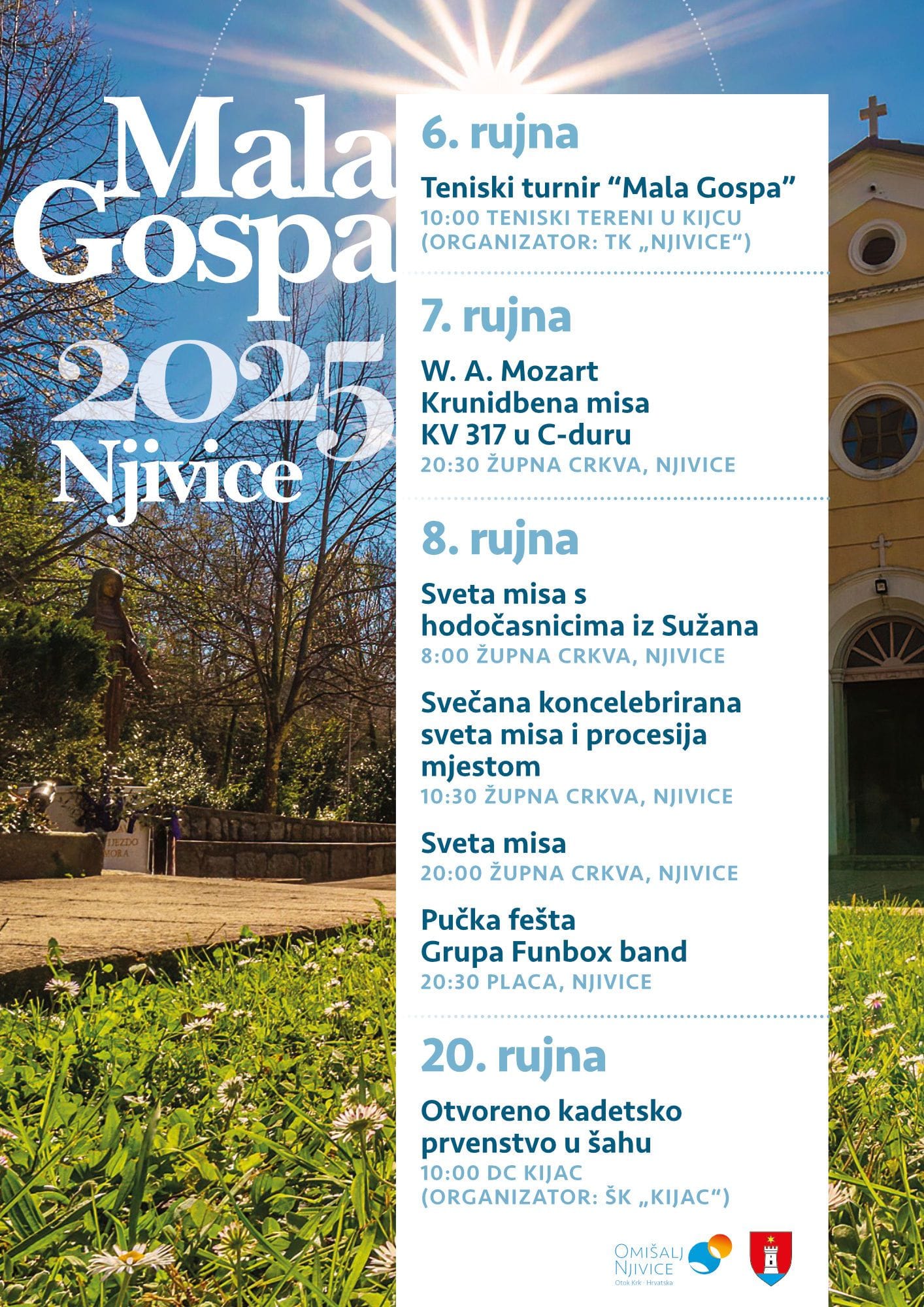 Pozivamo sve vjernike i posjetitelje da nam se pridruže u Njivicama te zajedno u molitvi i veselju proslave blagdan zaštitnice župe i mjesta – Male Gospoje.