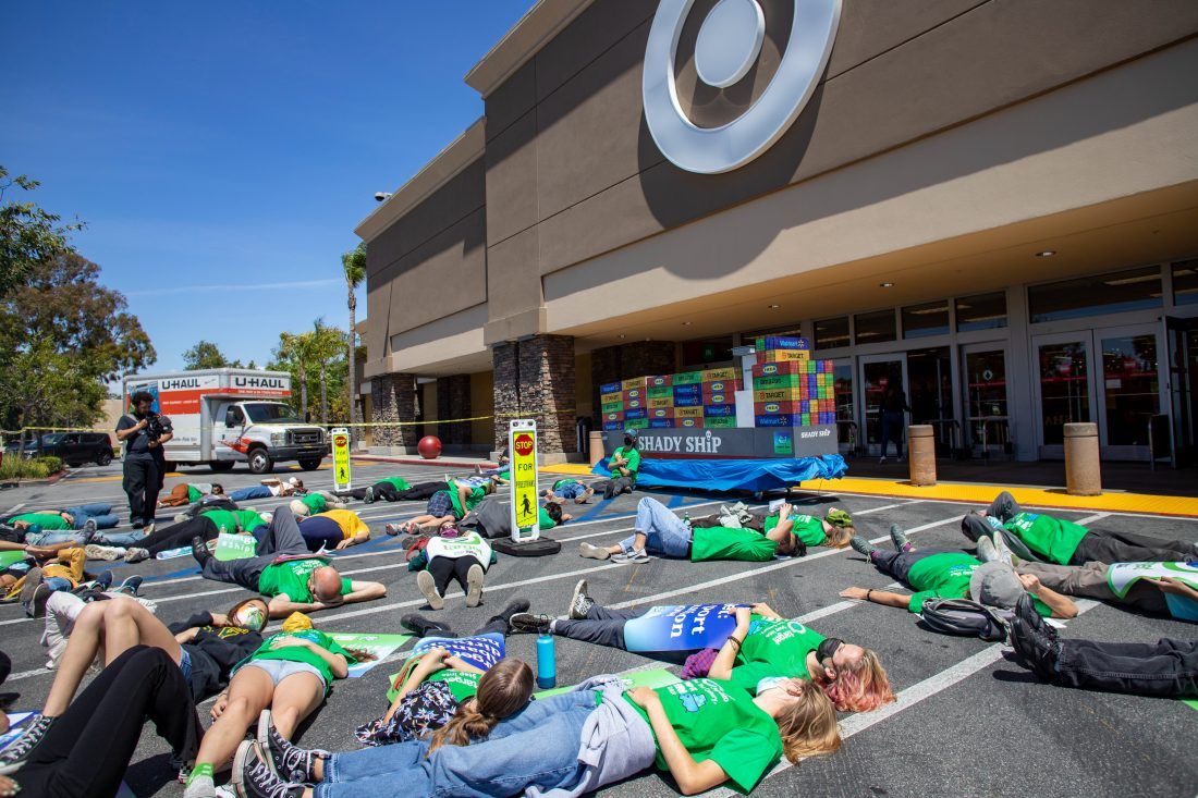8-minute die-in @Target in Long Beach. @target’s fossil-fueled ships contribute to an 8-year lower life expectancy in West Long Beach portside neighborhoods compared to the rest of LA country. #EarthDay2022 #TargetZero pic.twitter.com/OYOxfSDw3q
