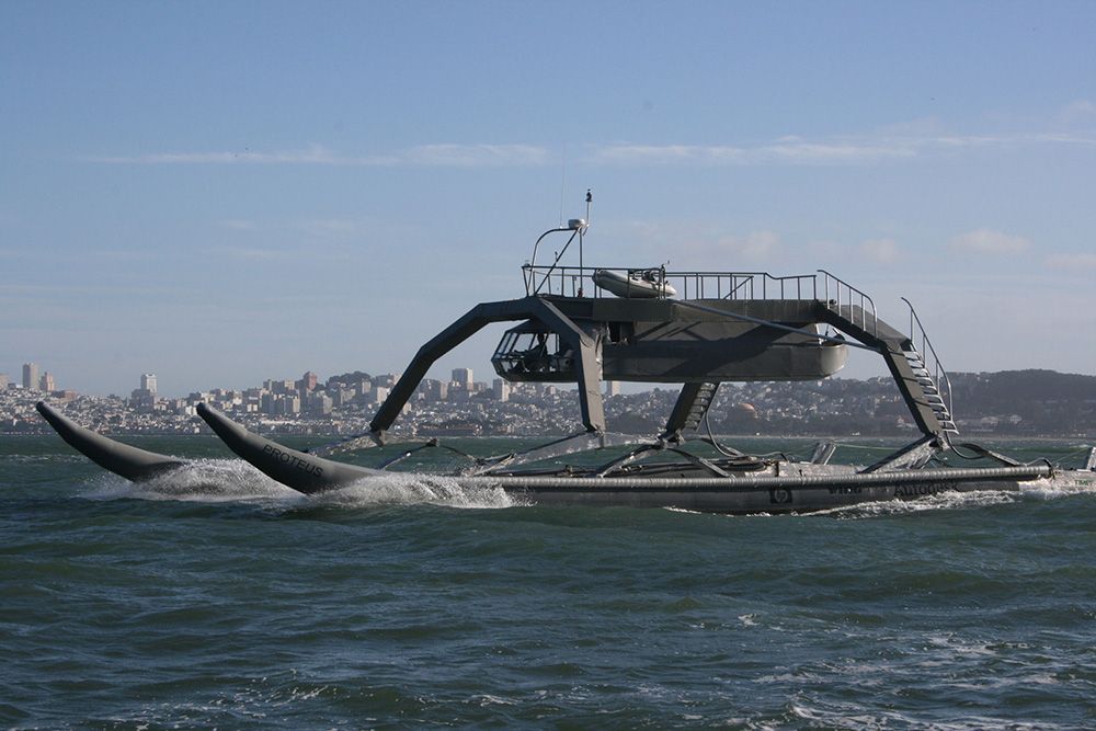 Futuristički brod Proteus pomalo nalikuje na nešto iz znanstveno-fantastičnih filmova, katamaran koji izgleda kao golemi vodeni pauk. Kabina za posadu i putnike montirana je na četiri divovske metalne „paukove noge”, koje su pak postavljene na dva pontona, pružajući pouzdanu plovnost. Duljina Proteusa je oko 30 metara, a njegova širina je 15 metara. Ovaj neobični brod pokreću dva dizelska motora od 355 konjskih snaga svaki. Njegova kabina sa četiri ležaja može se spustiti u more, odvojiti i biti osposobljena za plovidbu na kratke udaljenosti. Kabina može doći do pristaništa, ostavljajući „noge“ stotinama metara od obale. I, što je najvažnije, kabinu je moguće mijenjati i prenamijeniti Proteusa u višenamjenski uređaj. Proteus je dobio ime prema grčkom bogu mora, koji prema legendi, može mijenjati svoj oblik.